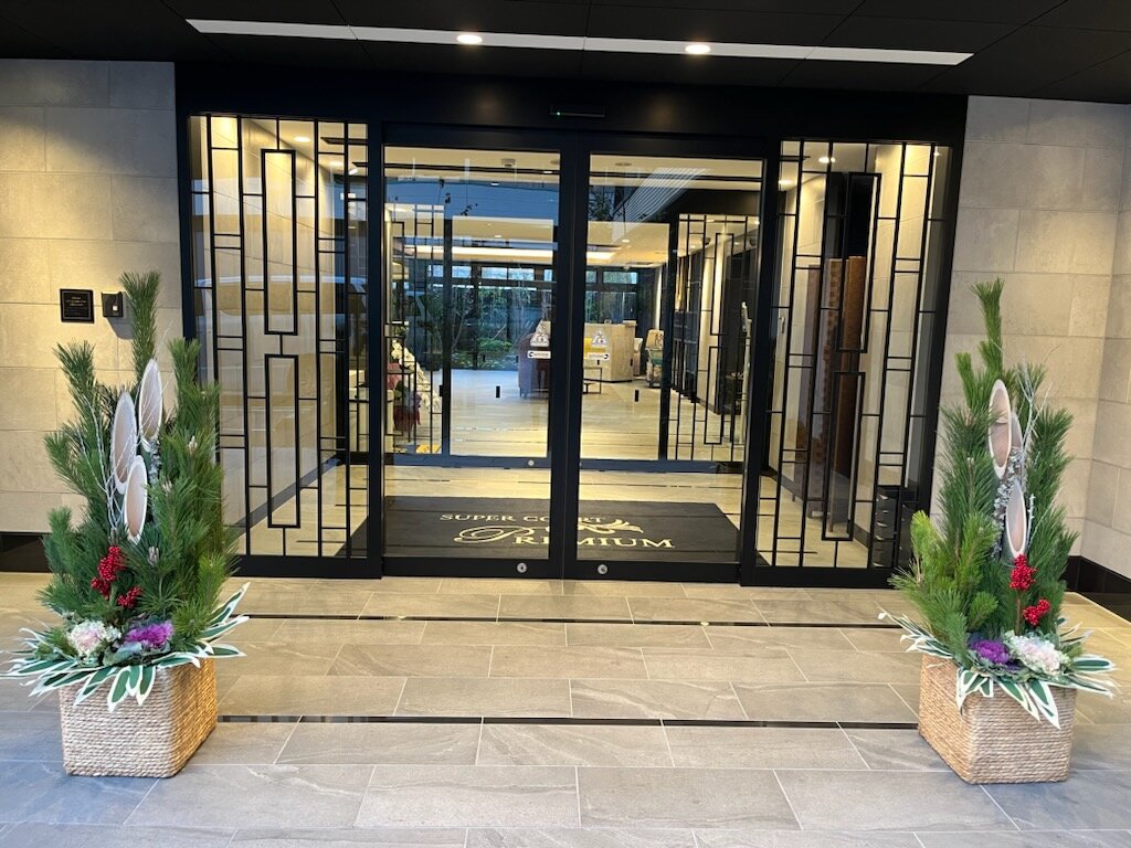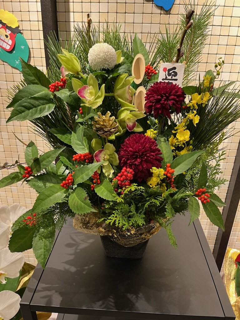 そして、1階エレベーター前にもお正月のお花が飾られました♪