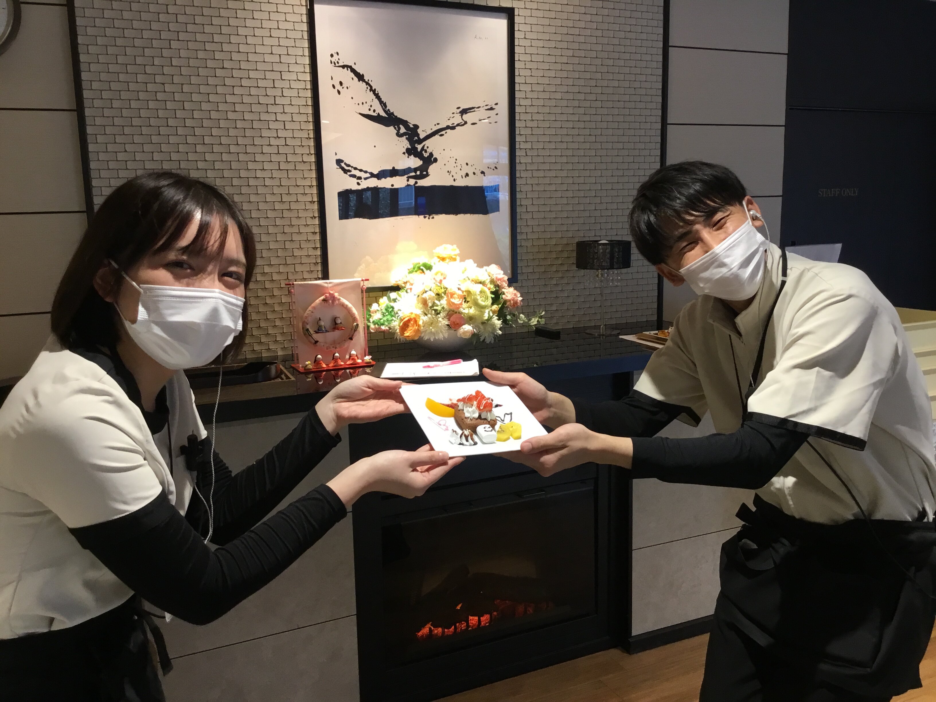 プリンに可愛いデコレーションをして召し上がっていただきました!(*´▽`*)