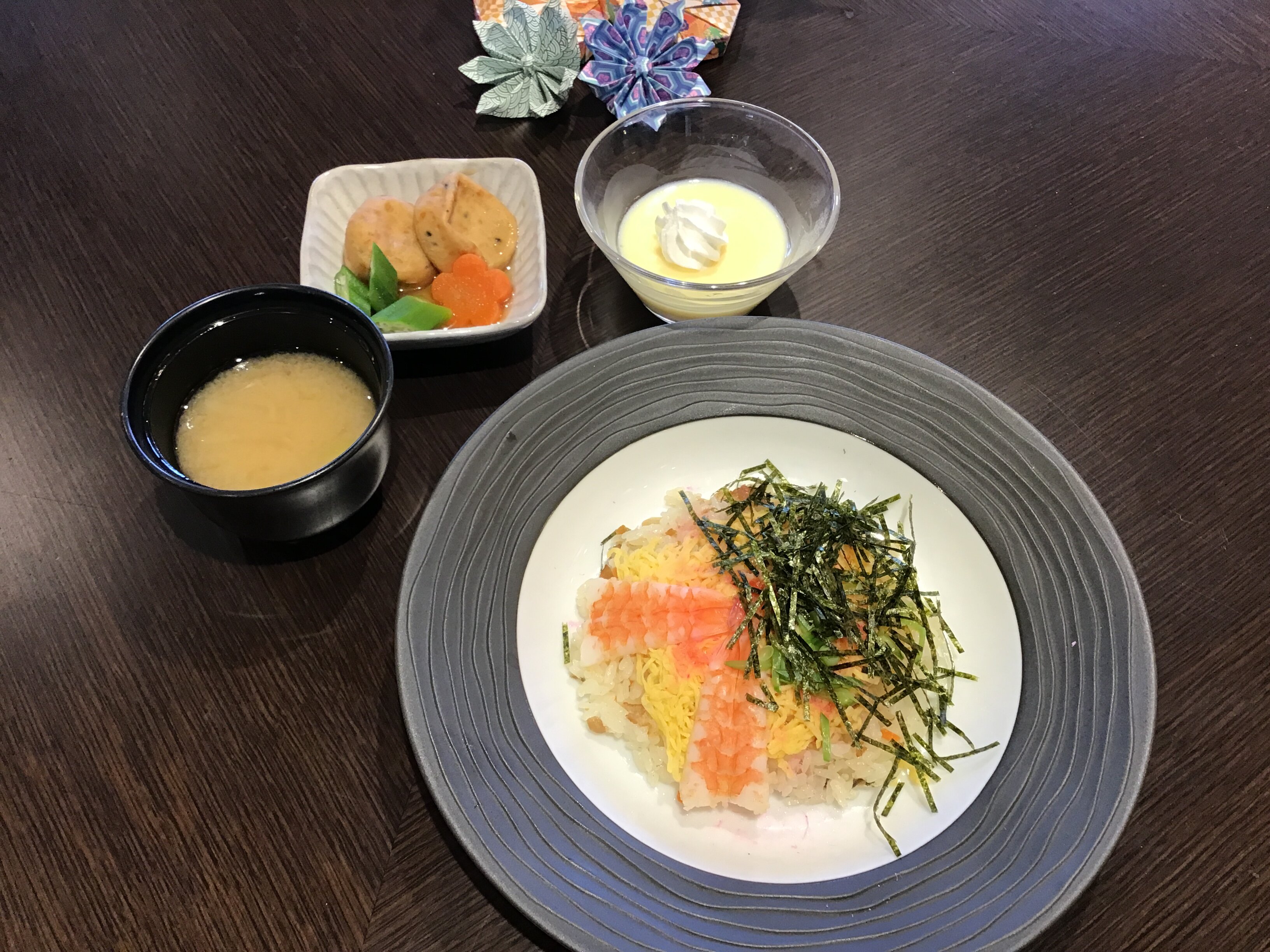 献立は、ちらし寿司・がんもとオクラの煮物・