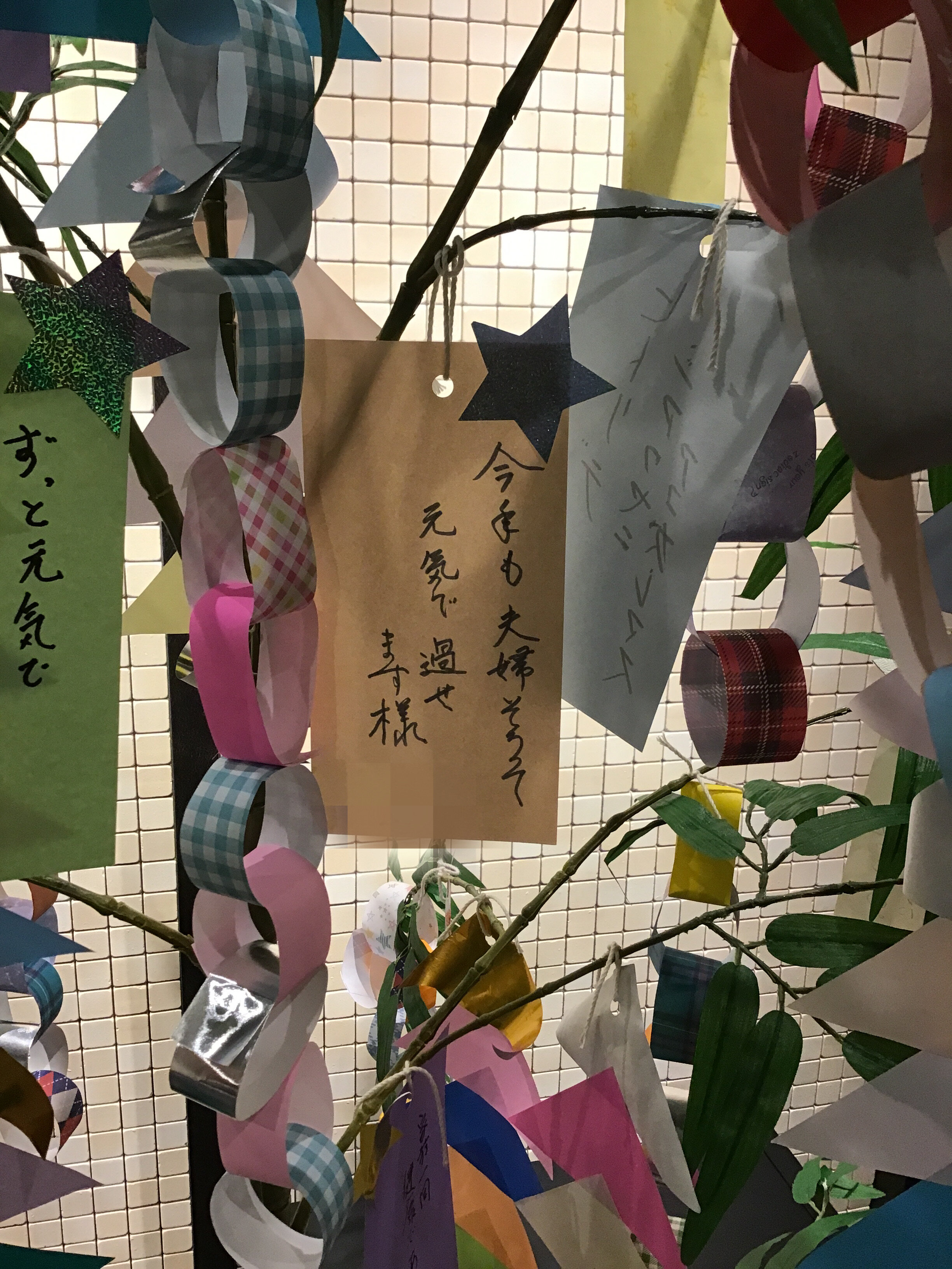 皆様の短冊と、山盛りだった飾りを出来る限り