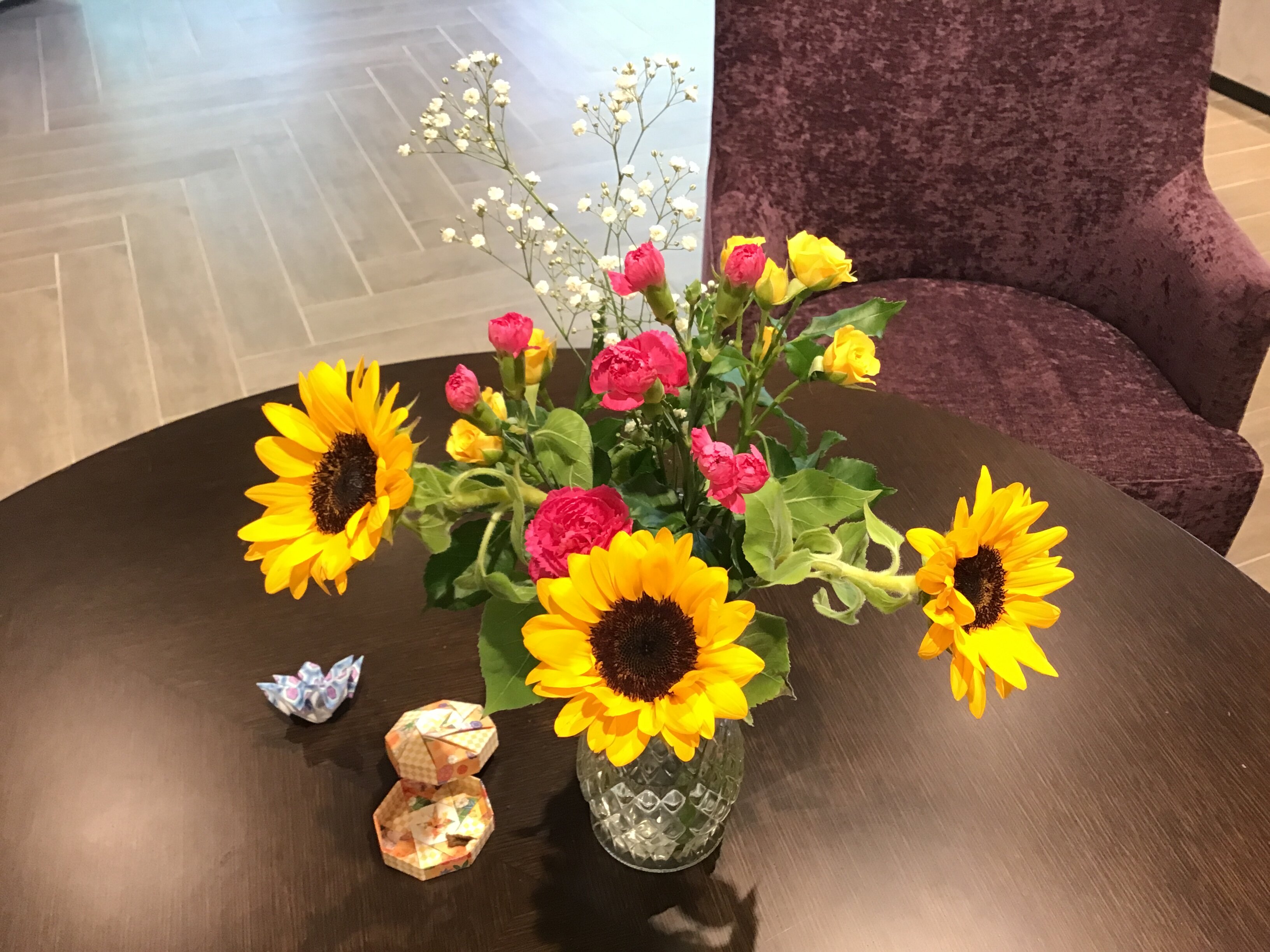 談話室のテーブルには季節のお花も飾っています(*´ω`*)