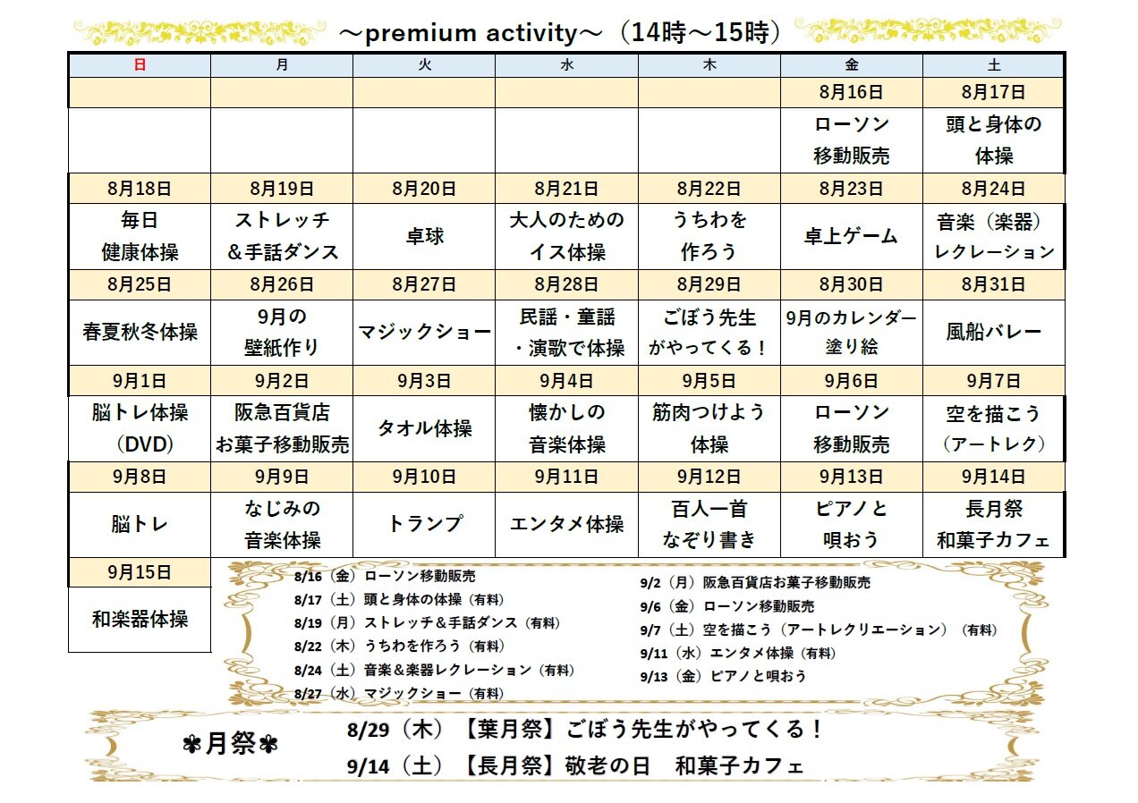 8/16~9/15のアクティビティカレンダーが完成しましたので、ご紹介いたします(*^^*)![]()