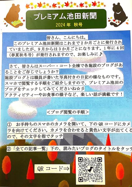 プレミアム池田では、職員が季節ごとにご入居者向けの「プレミアム池田新聞」を作成しています。