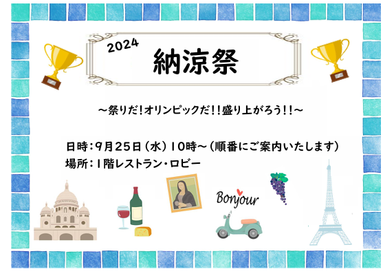 納涼祭のテーマをオリンピックでパリを舞台に準備致しました!