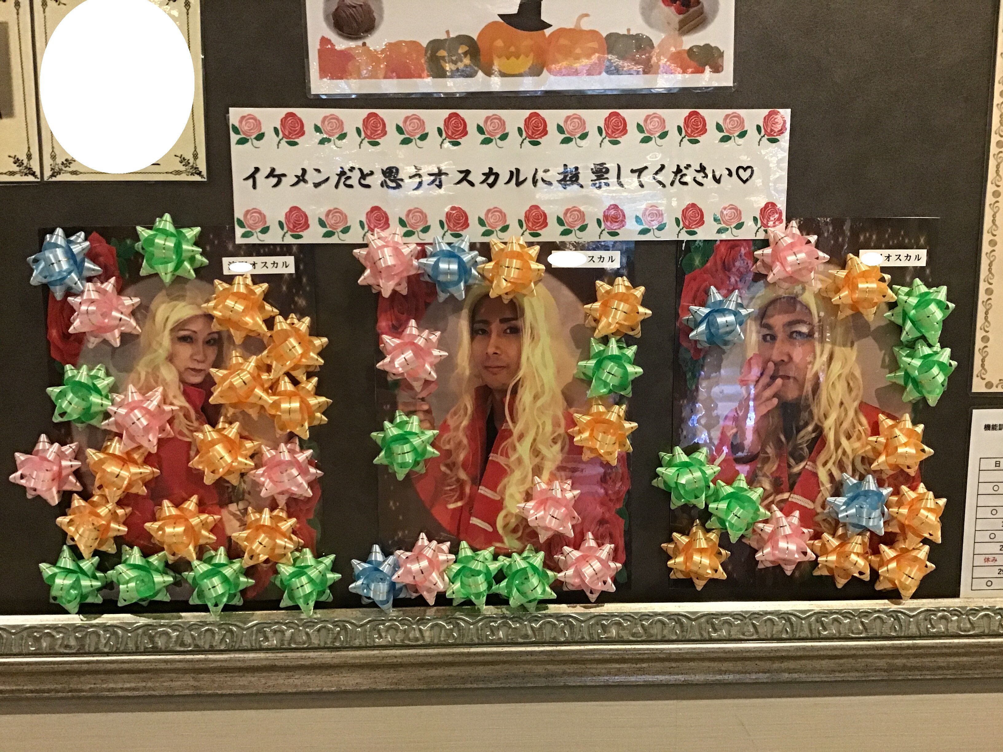 事前投票では掲示板に宣材写真を掲示し、素敵だと思うオスカルに花を