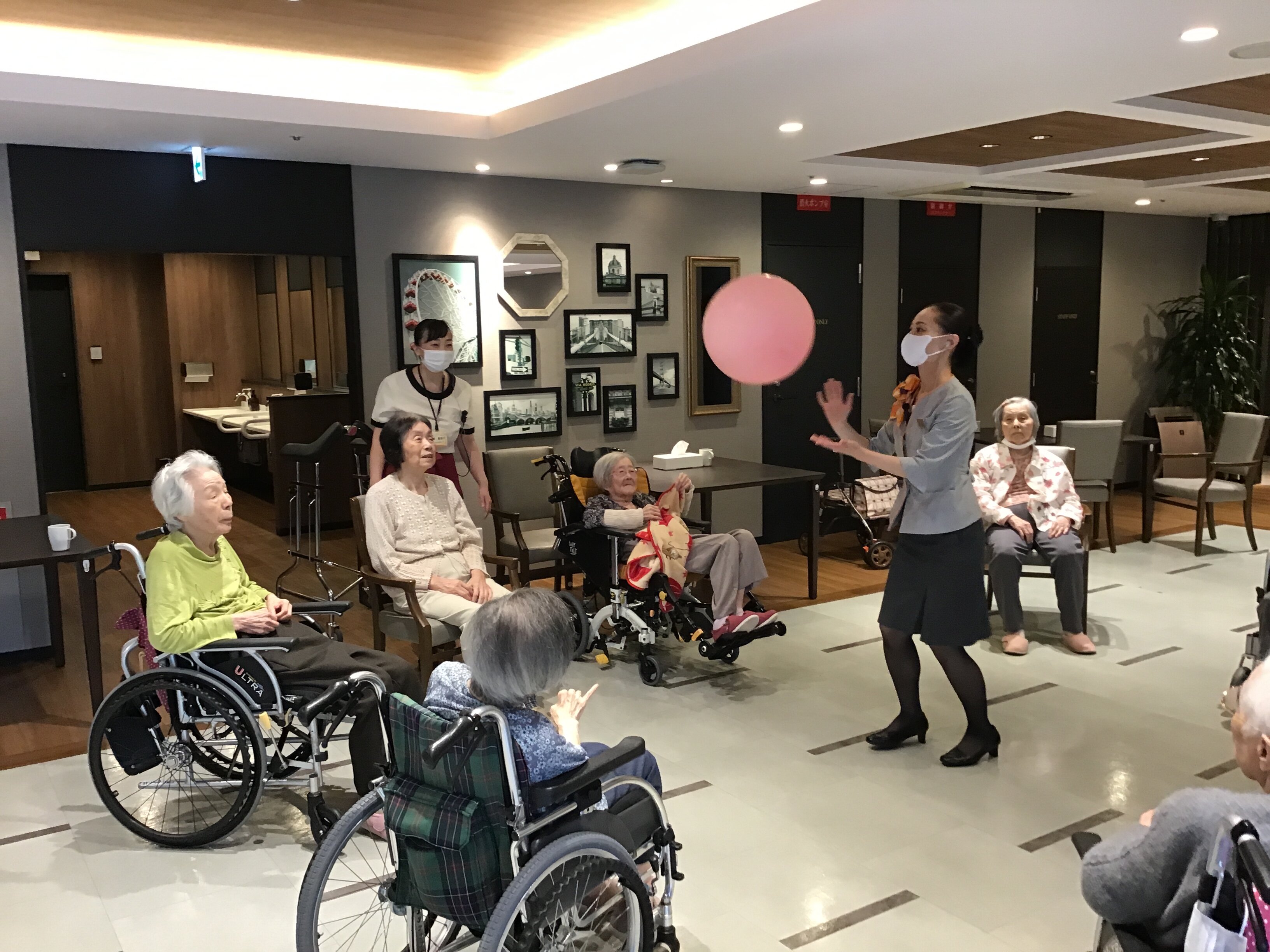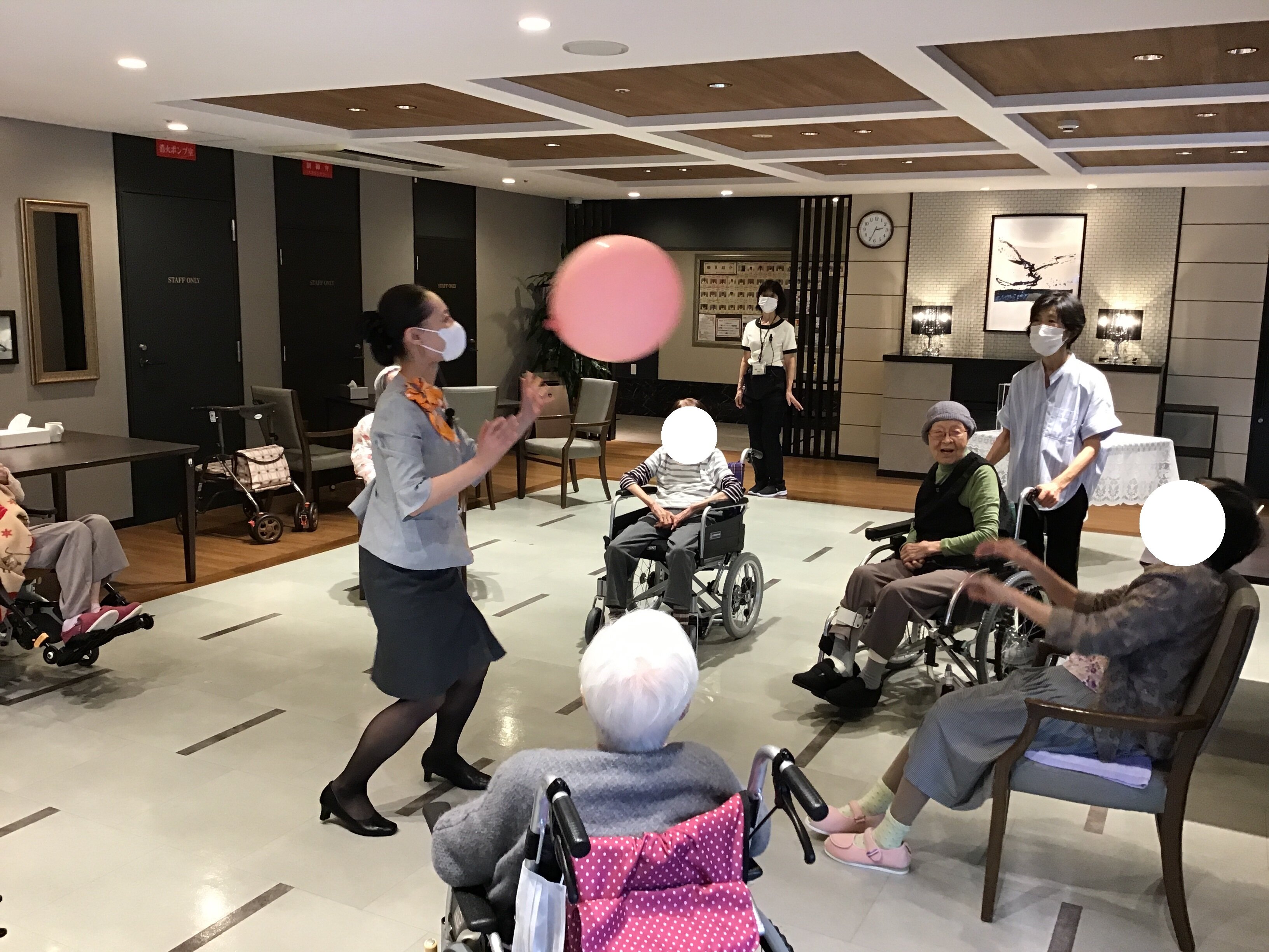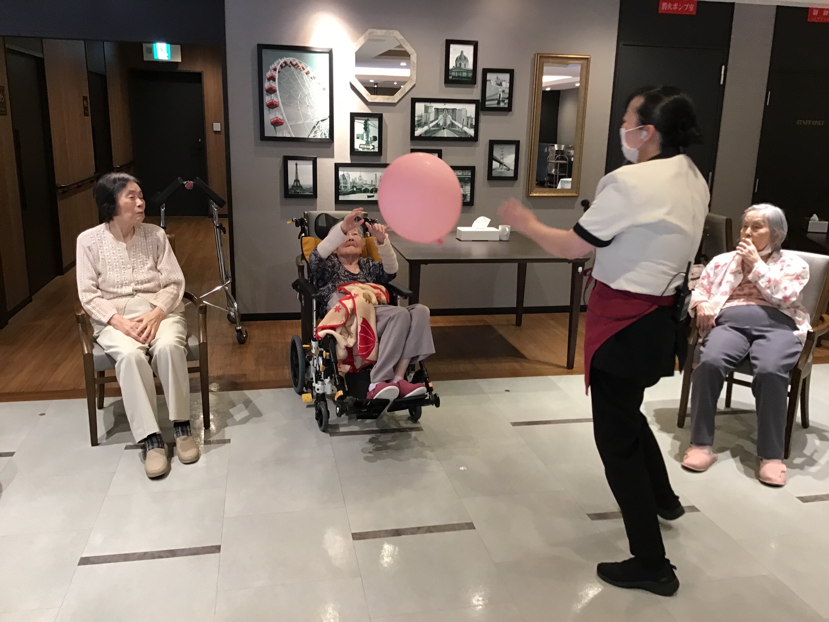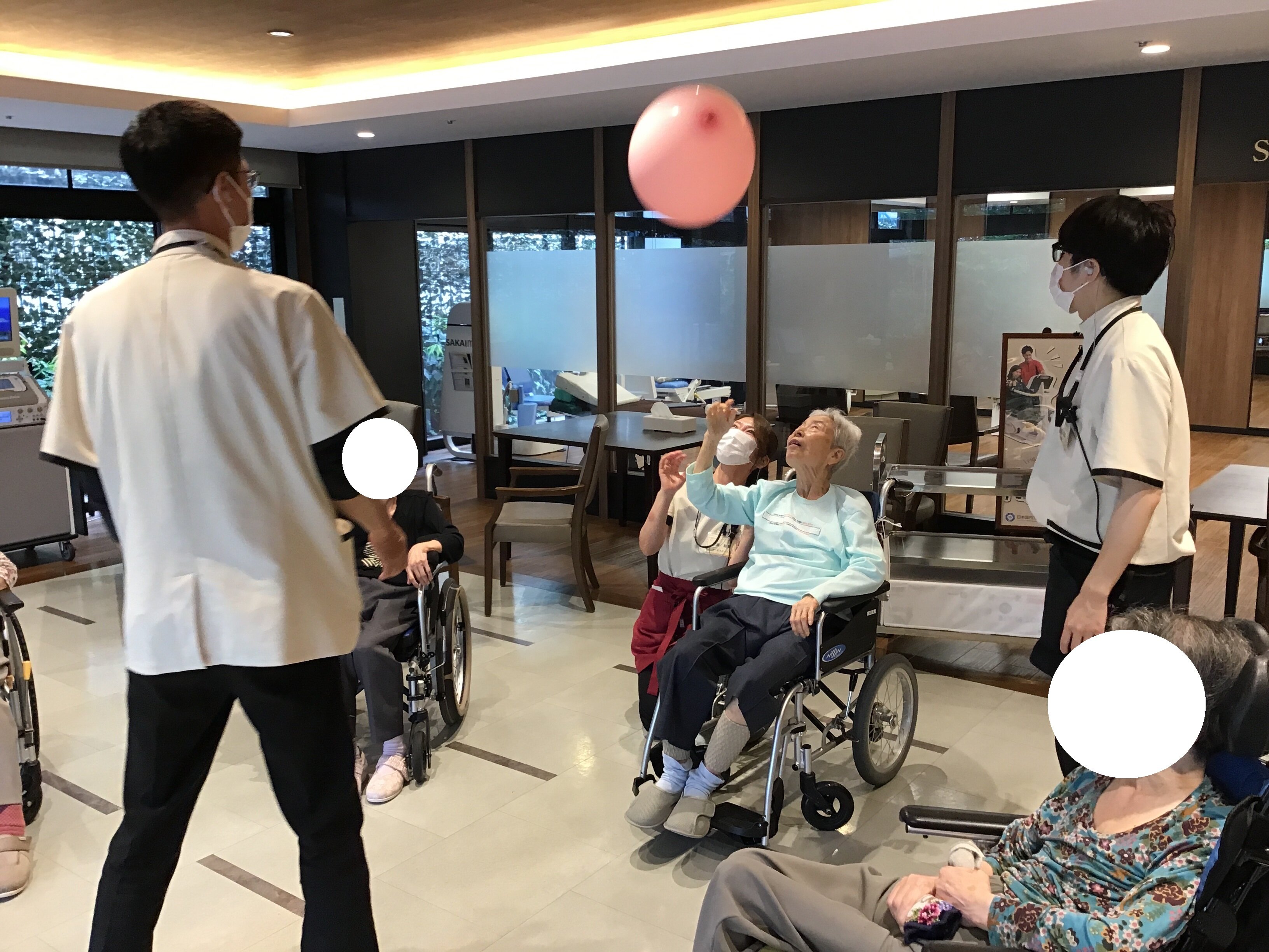 初めて風船バレーをするご入居者も楽しんでくれているご様子で、積極的に手を