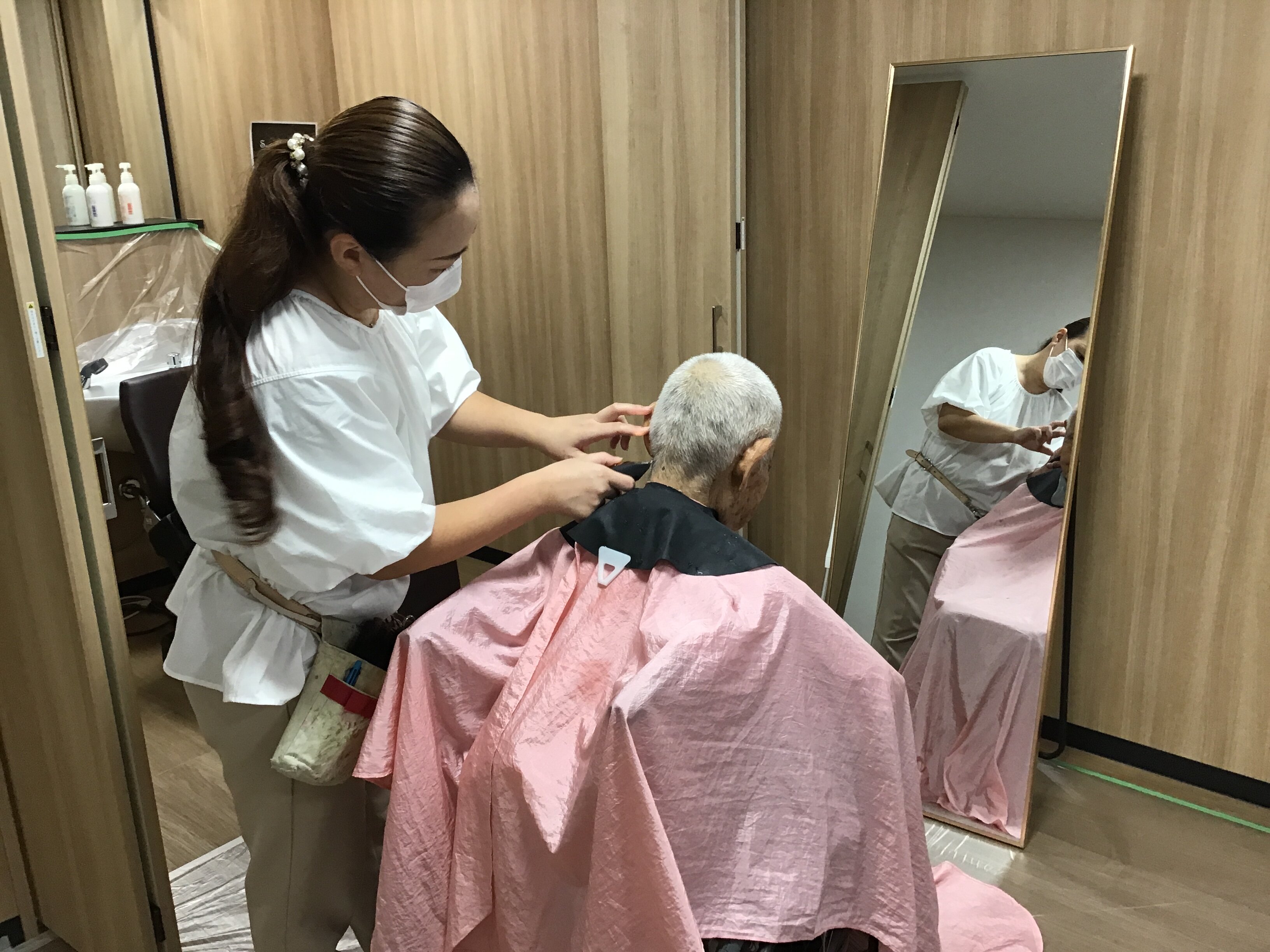 毎月、美容師の方にお越しいただき、施設内での施術を行っています。
