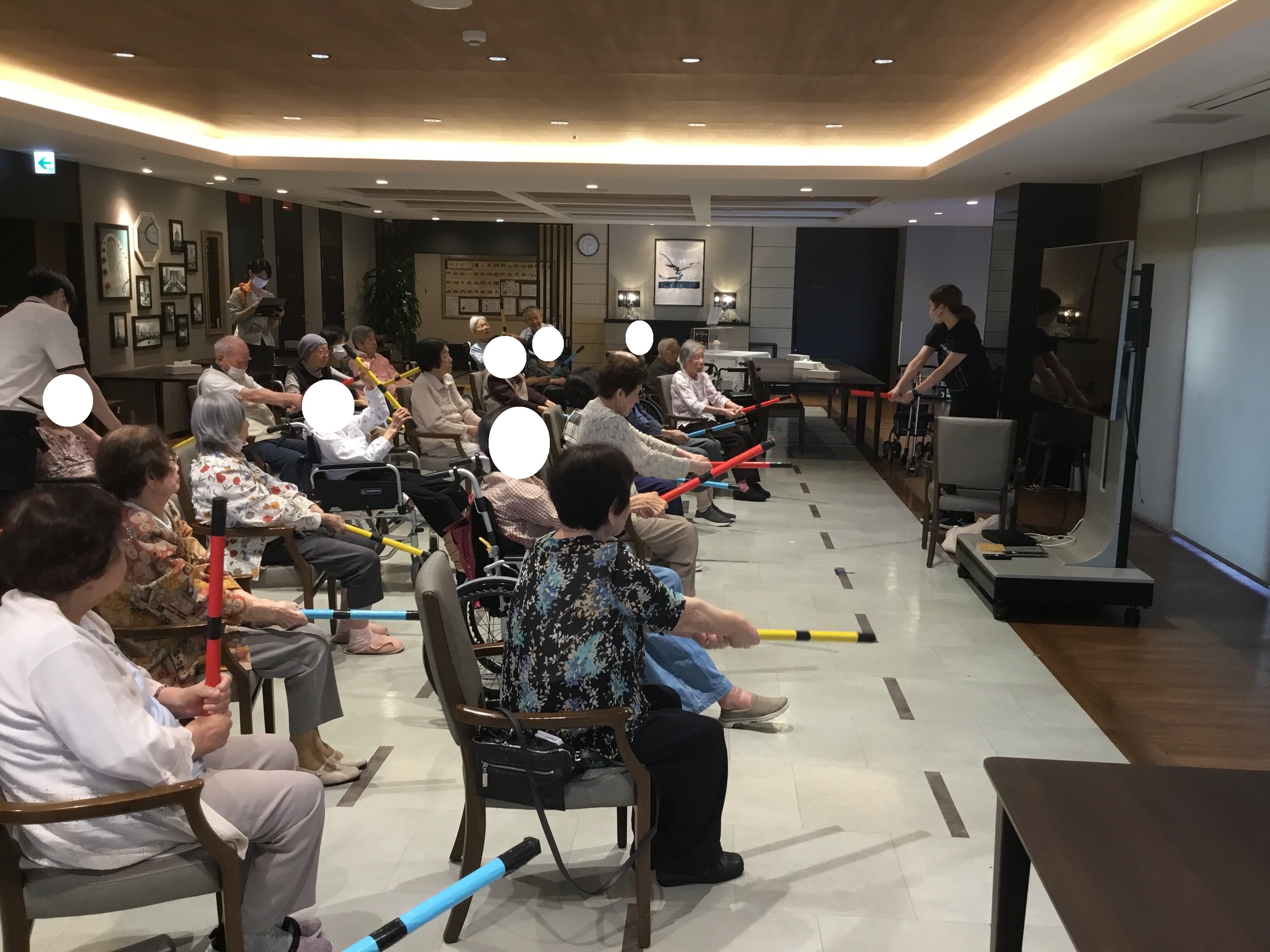 いつも試行錯誤しながら、様々な体操をしてくださり、ご入居者も楽しそうに体操を行っています!