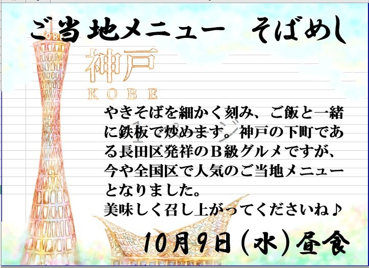 今や全国区なそばめし、9日の昼食が楽しみなご入居者も多そうですね(*^^)v