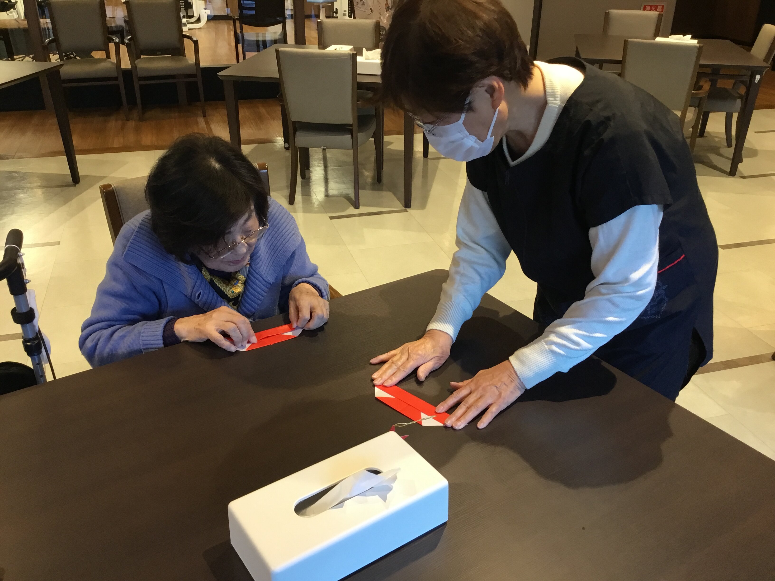 さて、今回は先日に行った折り紙教室の様子をご紹介します♪