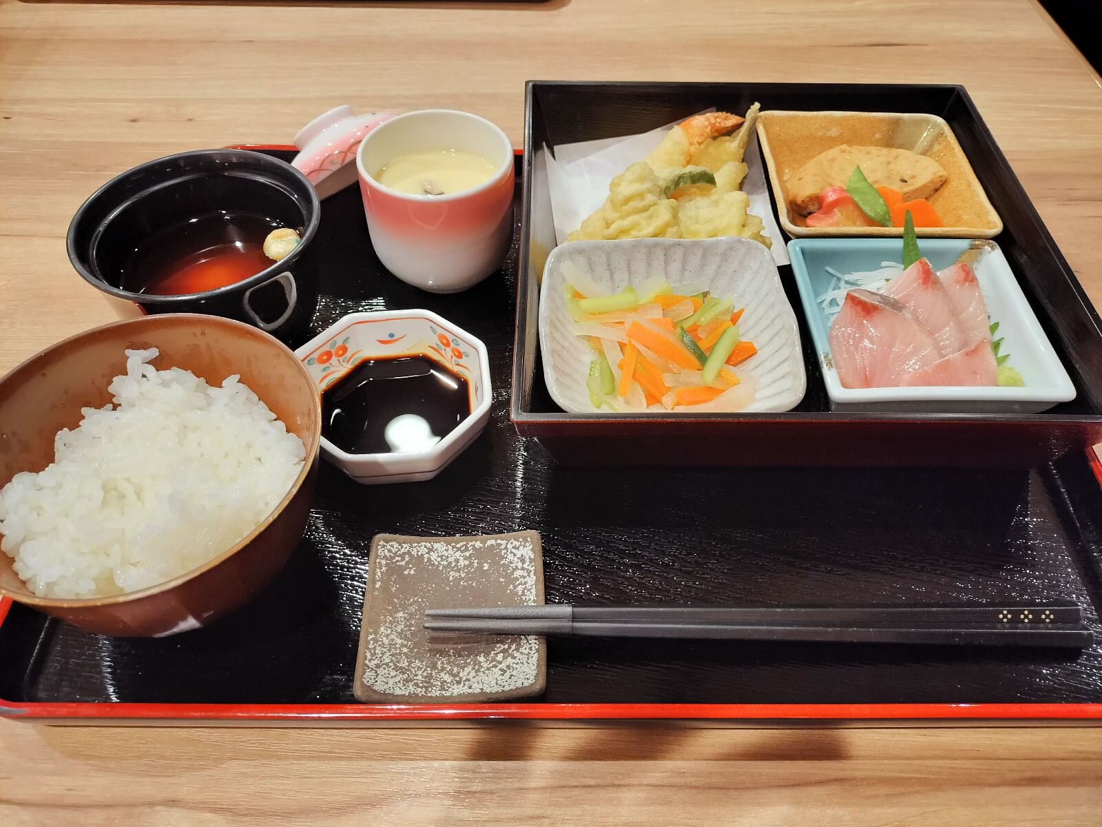 天ぷら/お造り/炊き合わせ/酢の物/茶碗蒸し/白米/赤だし