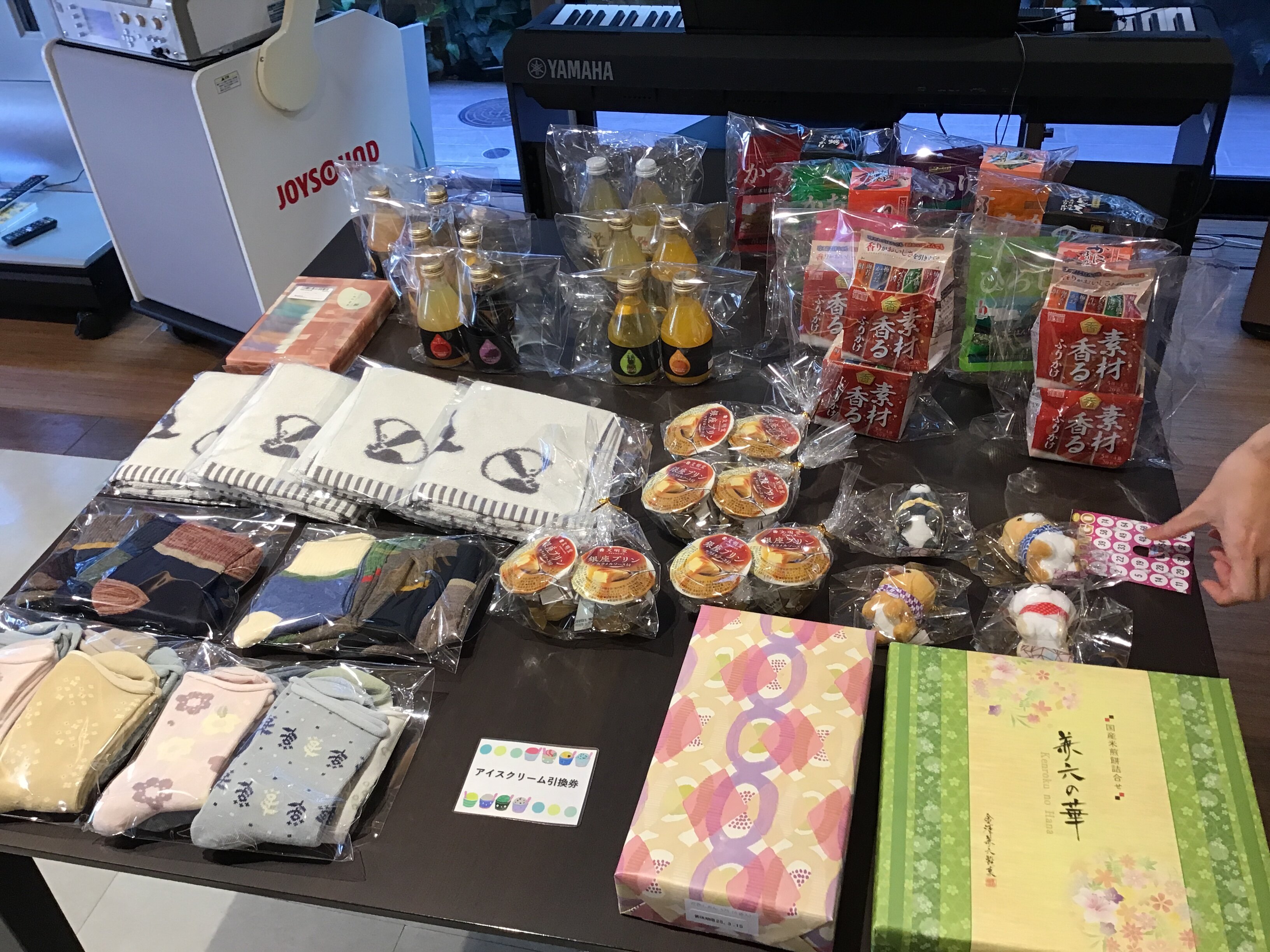 おかき、ふりかけ、ジュース、タオル、靴下、プリンなどなど