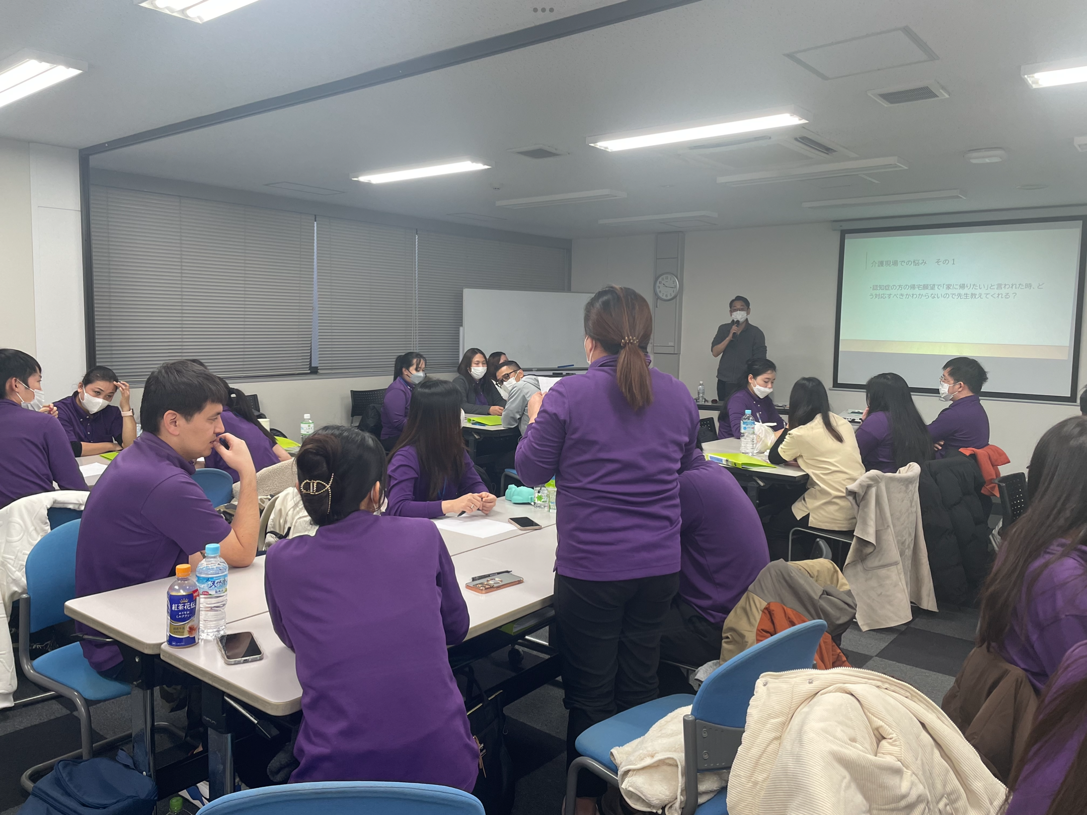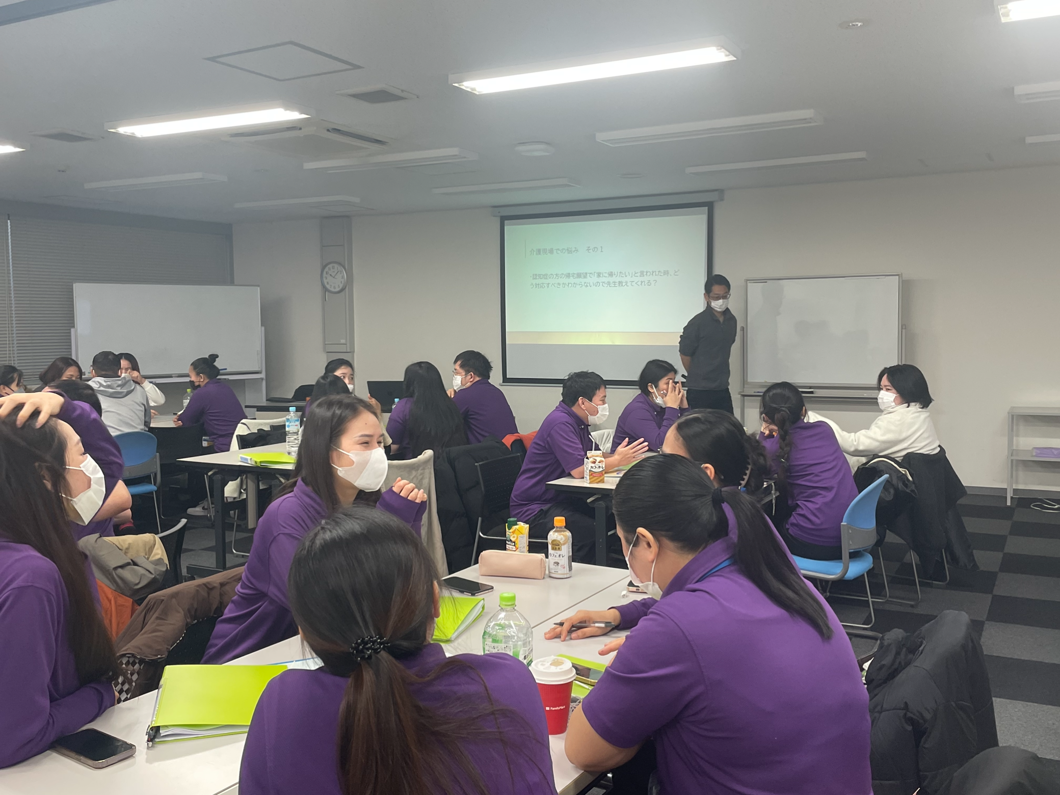 今現在、スーパー・コートプレミアム池田ではグローバルスタッフは勤務しておりませんが、池田の介護職員(今回ブログの中の人)が社内大学の講師として携わっています(^^)v