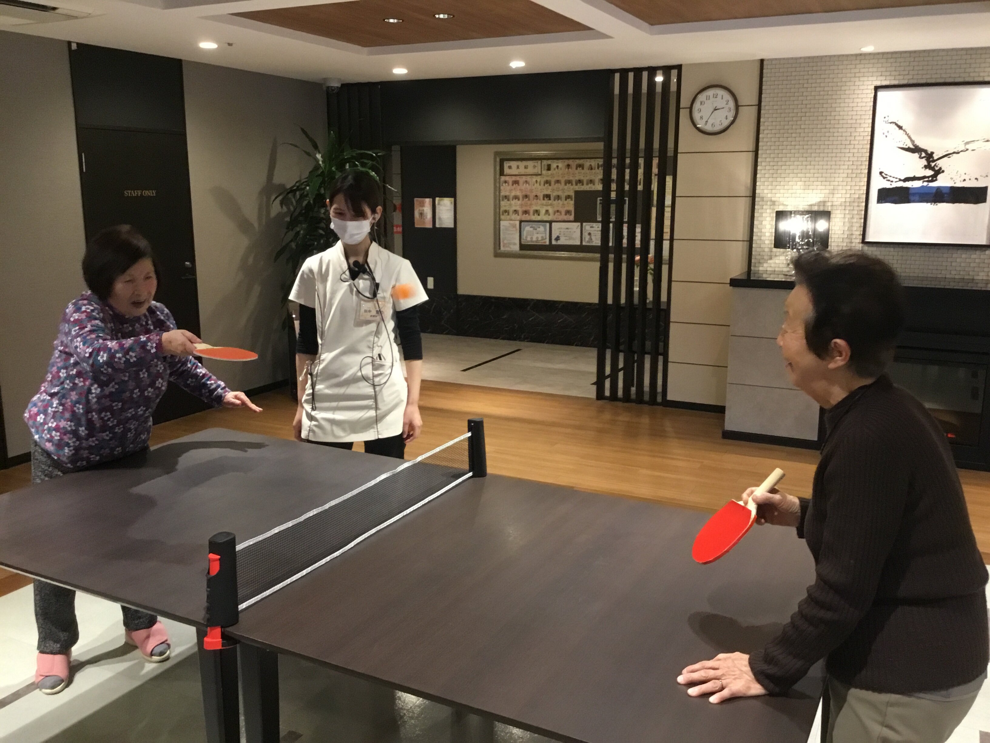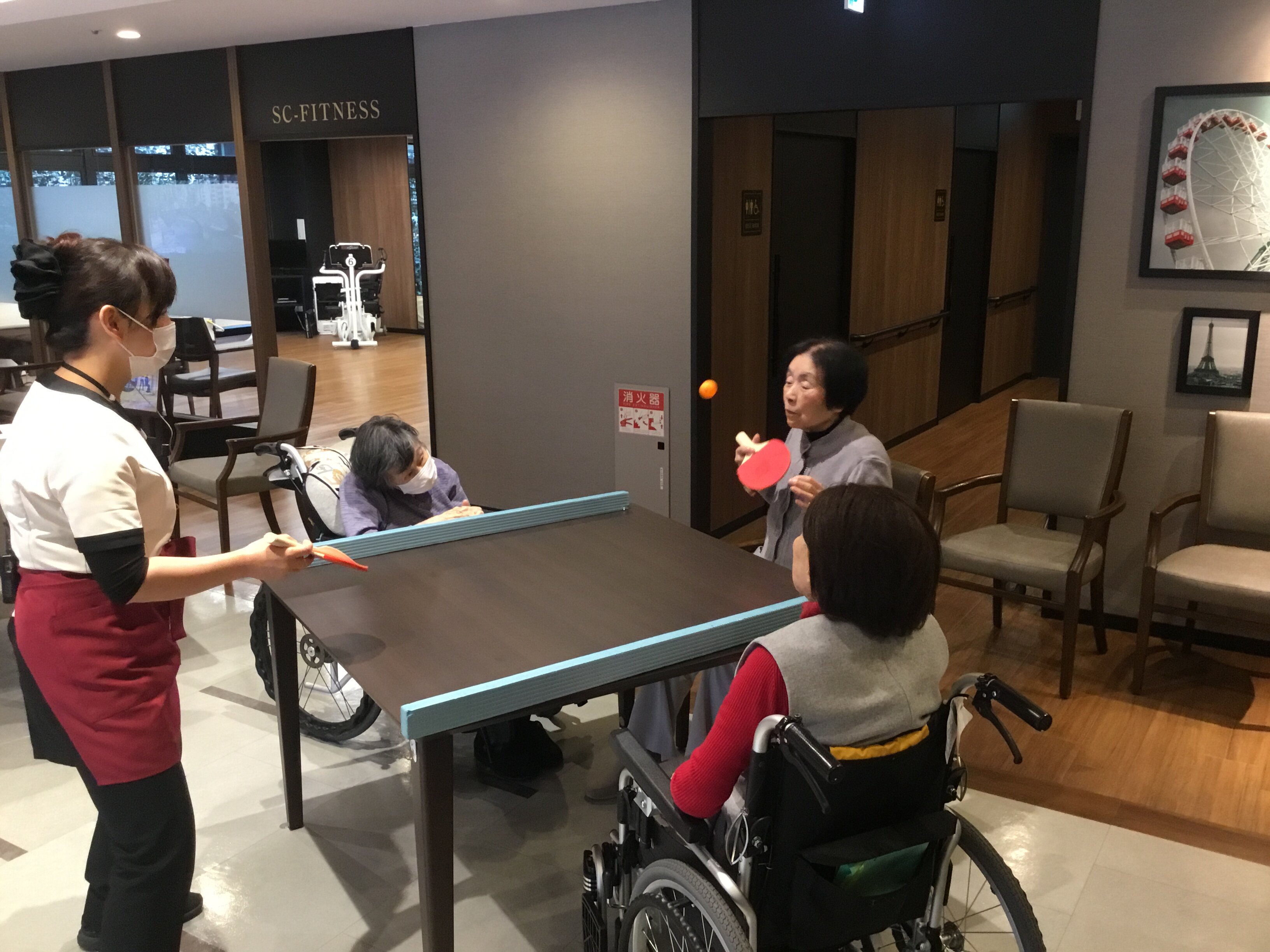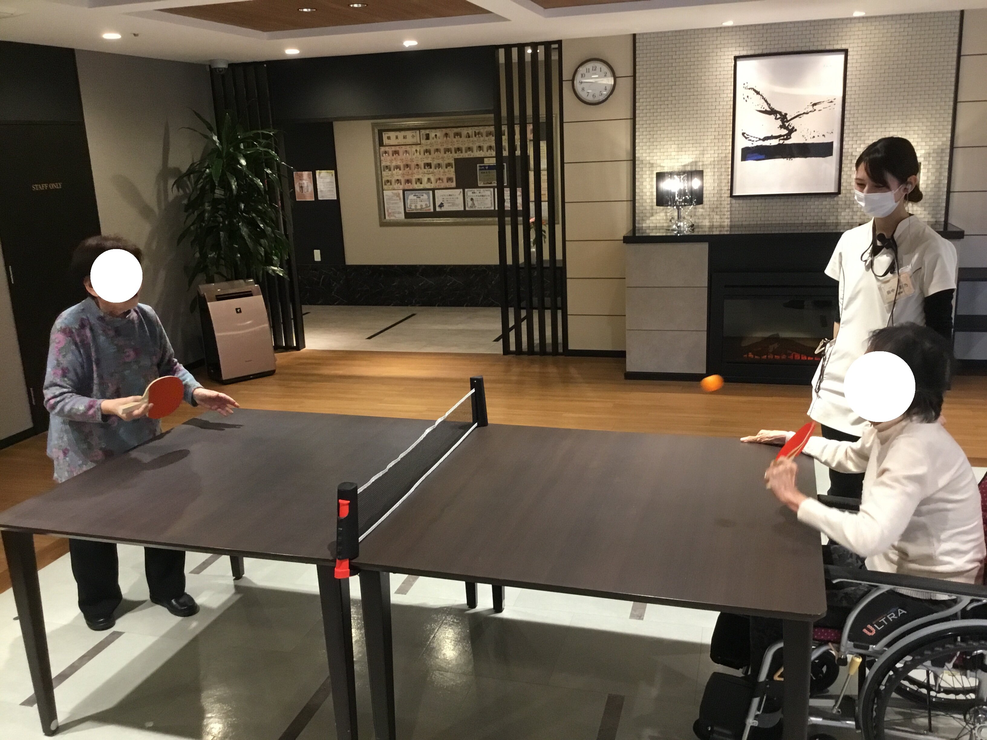 当施設で毎回白熱するアクティビティが「卓球」と「風船バレー」です。