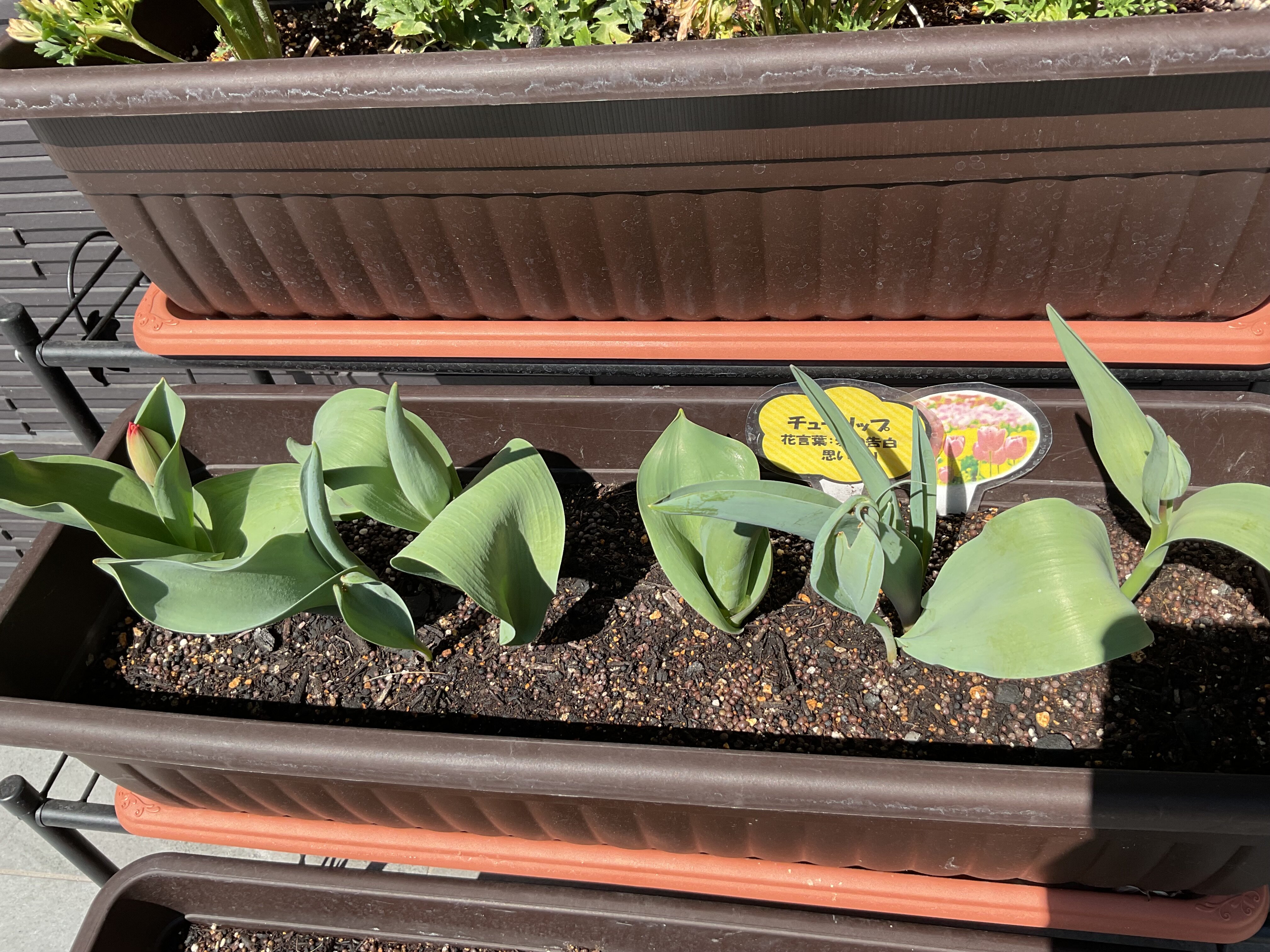 冬から植えたチューリップの球根が今やこんなにも成長しました!!![]()