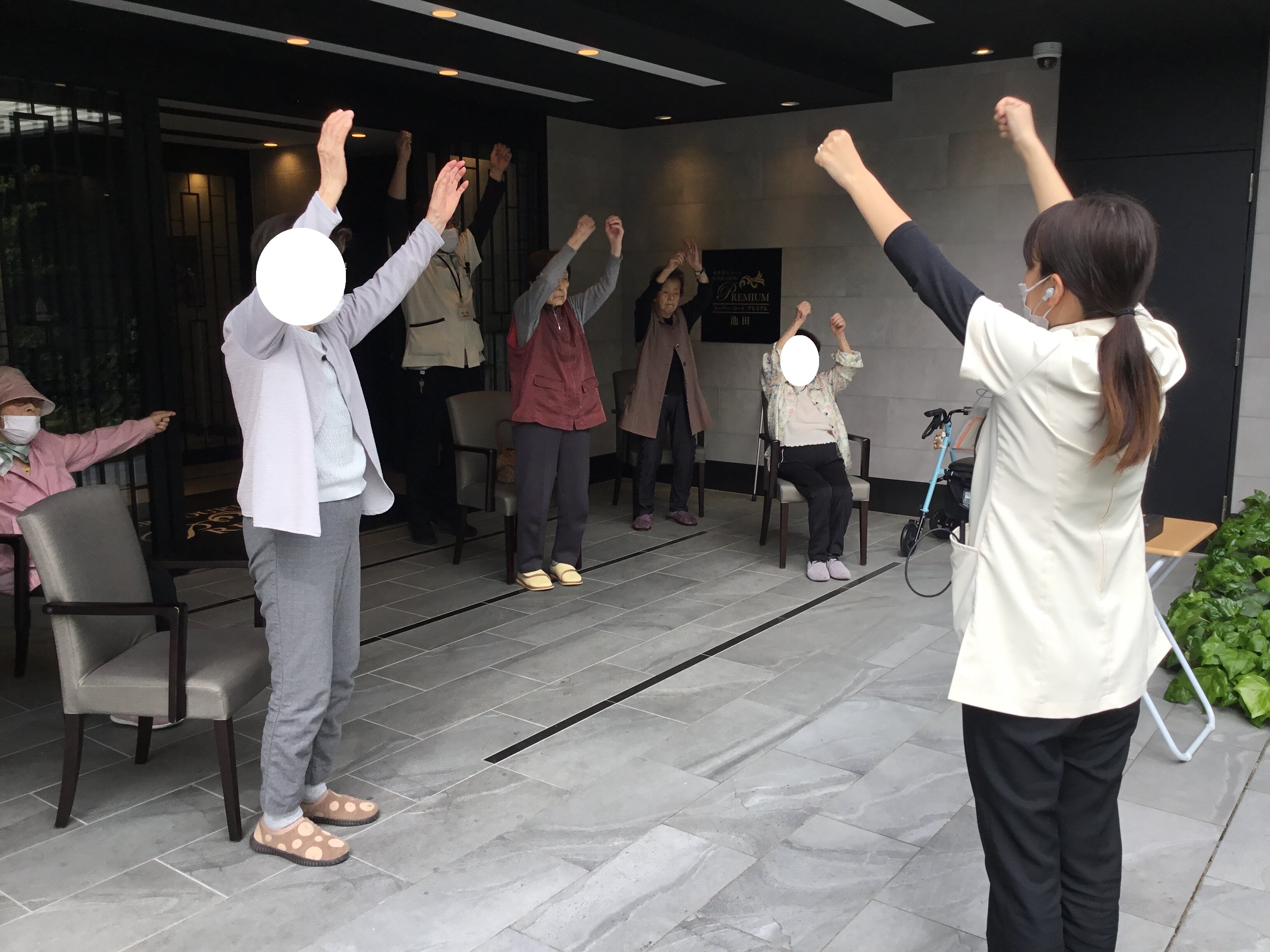 最近は暖かい気候なので先日、外でラジオ体操をしました♪
