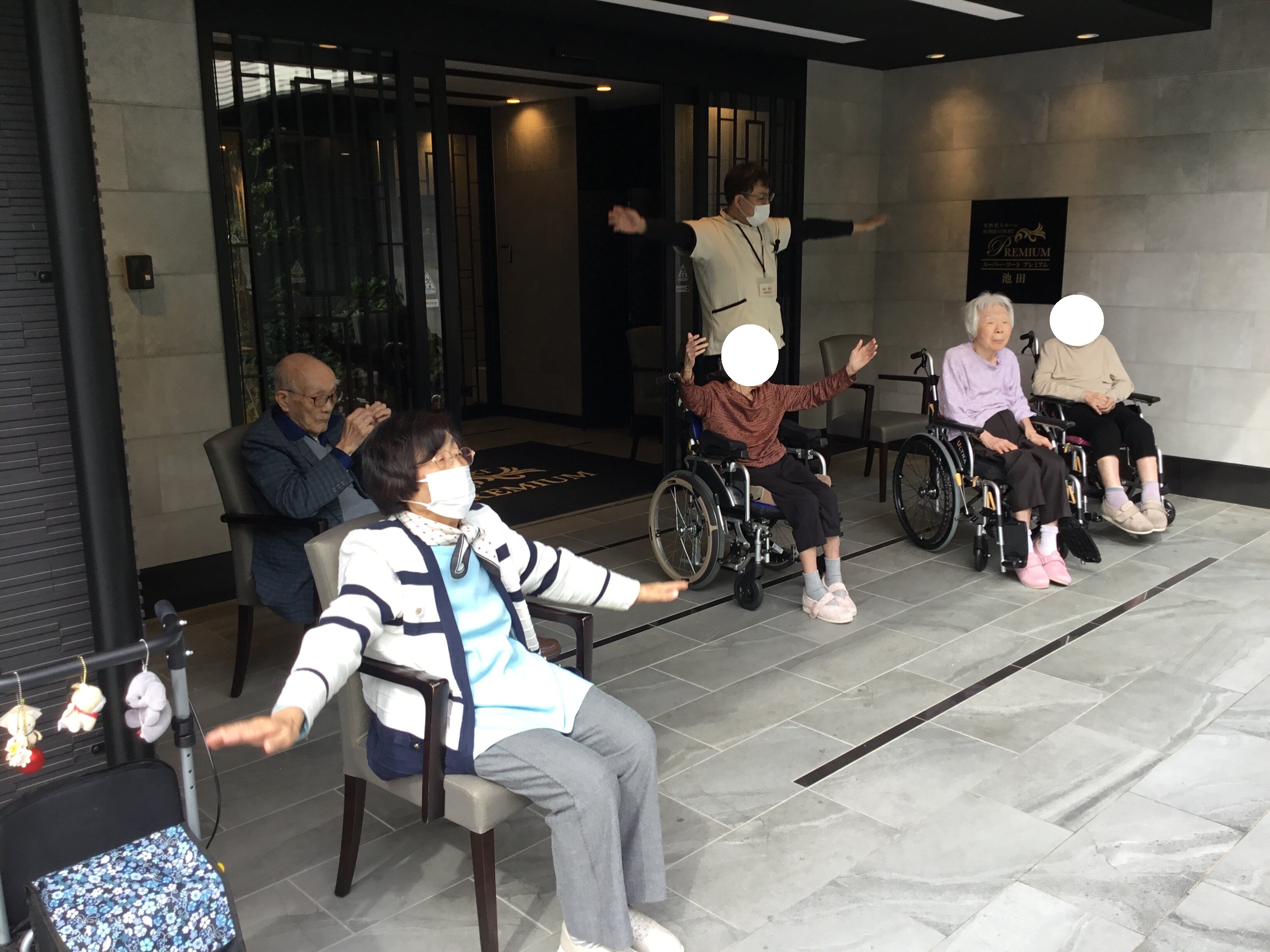 動画を見ながら体操したのですがご入居者の方は覚えてる方もいらっしゃいました!!