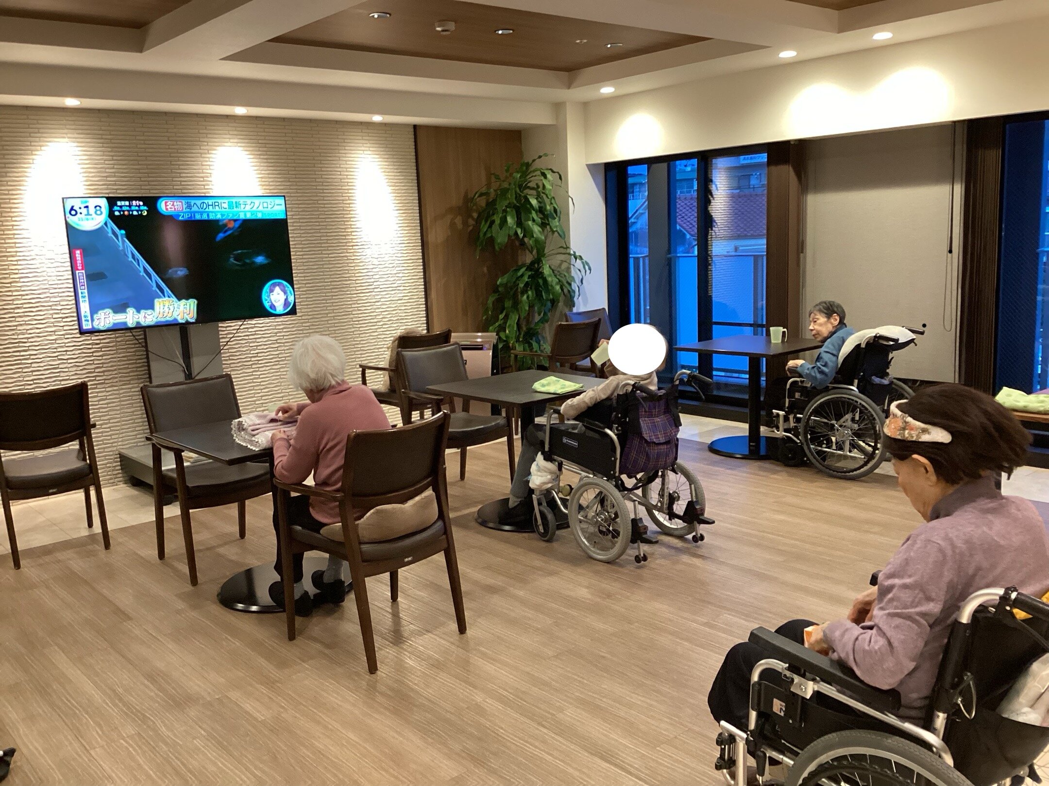 2階の方は朝の準備に手助けが必要な方が多いため、介護スタッフが5時頃から起床のお手伝いをさせて頂いております。