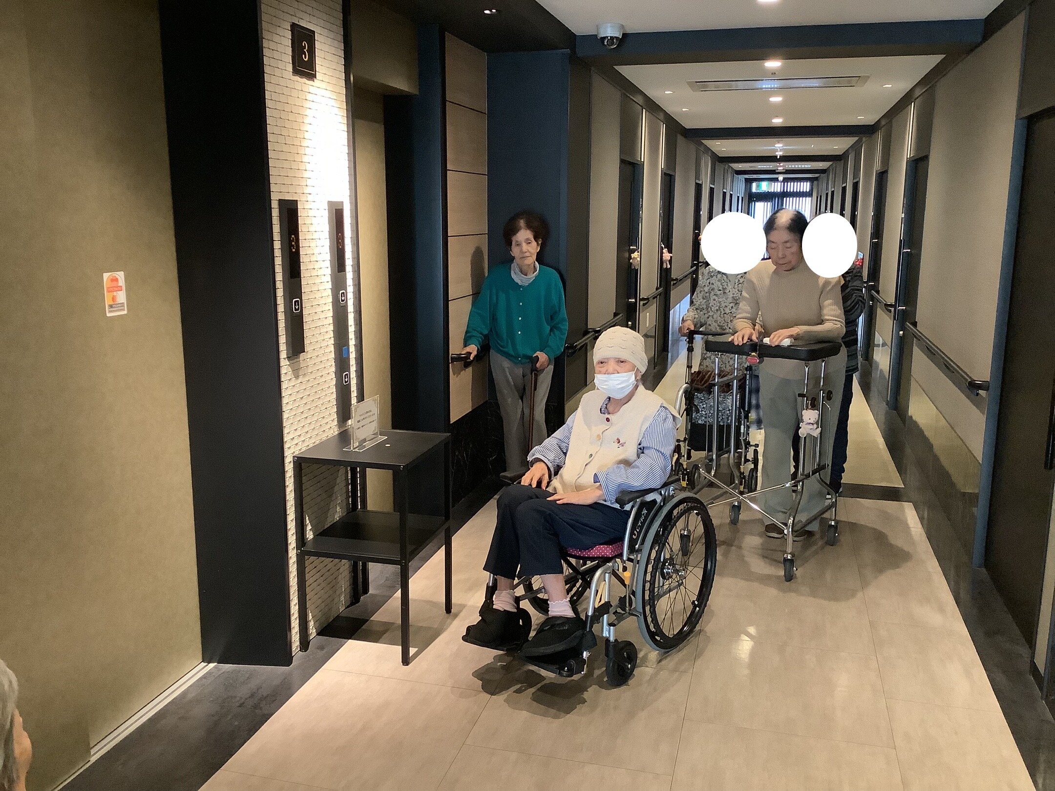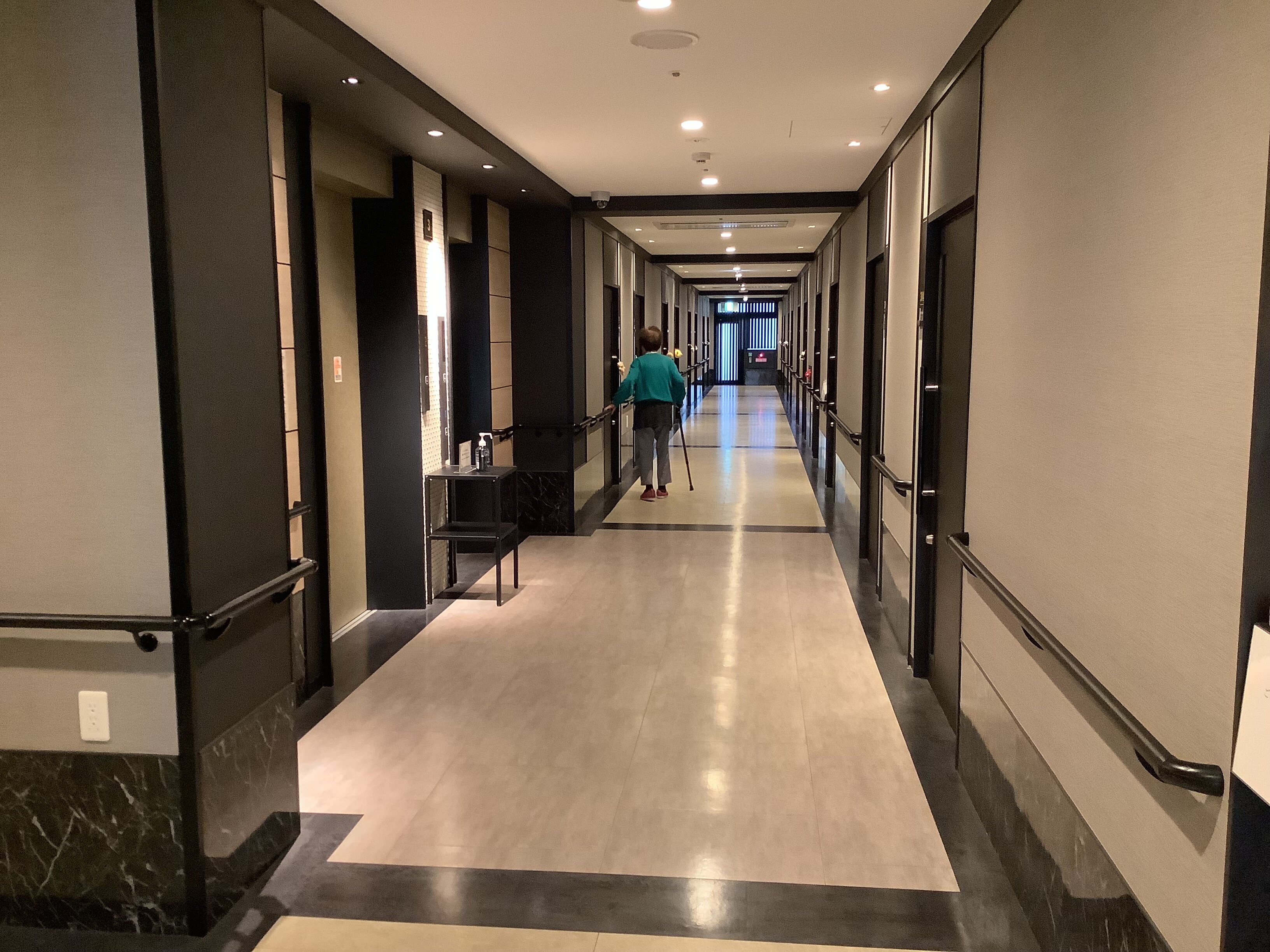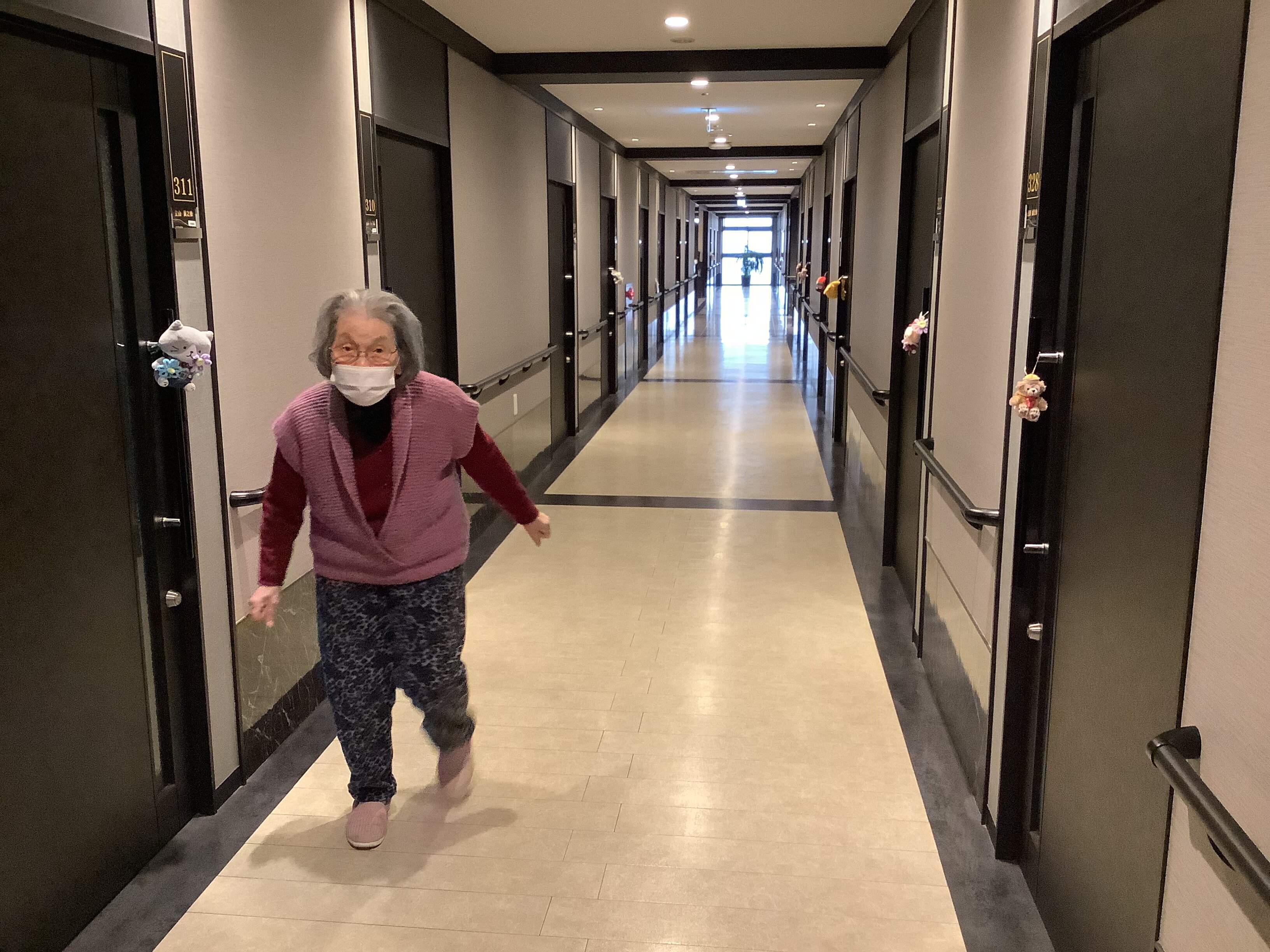 朝一番で歩行練習をされているご入居者もおられます!長く生きるための秘訣ですかね?(*'ω'*)