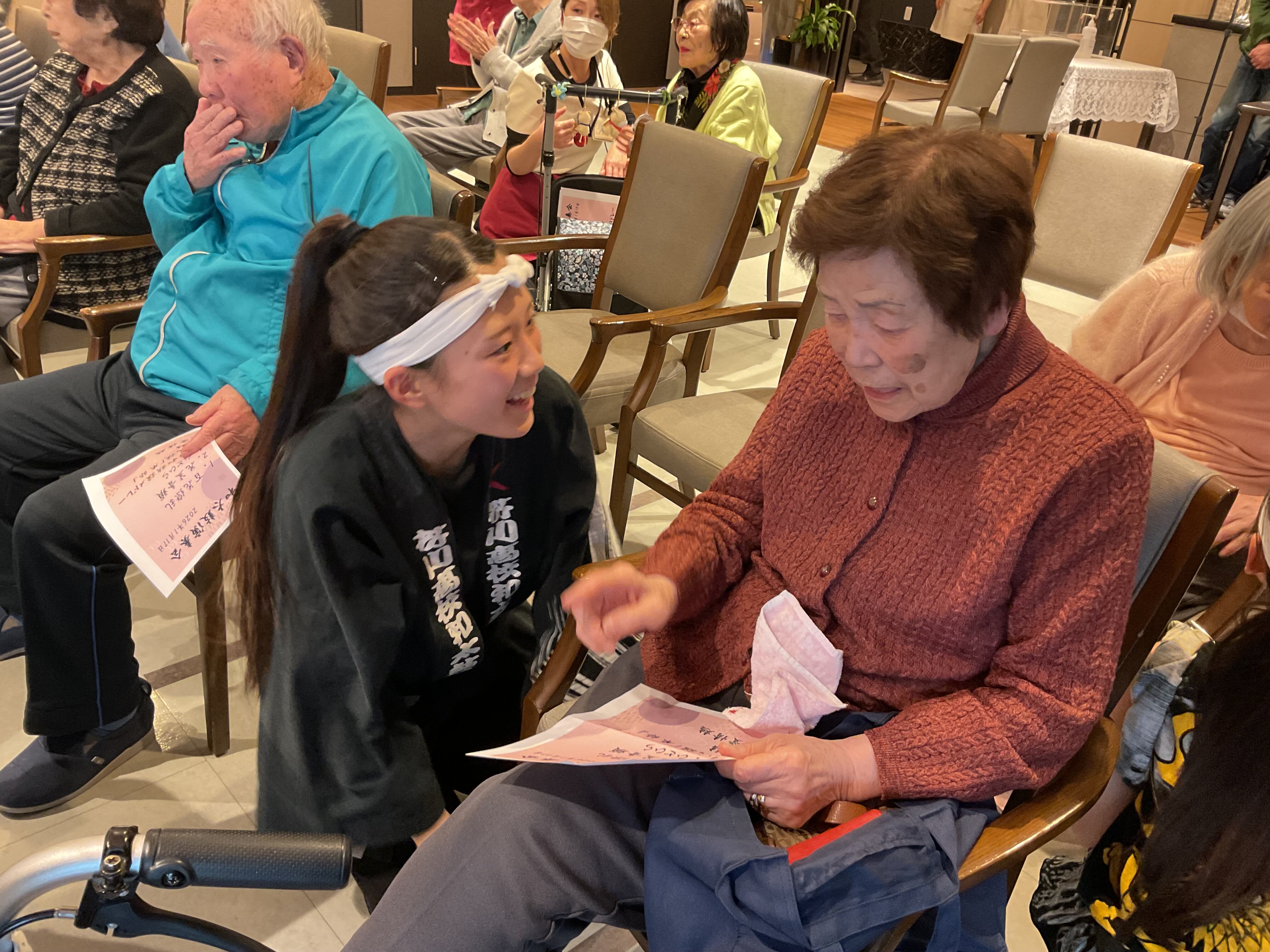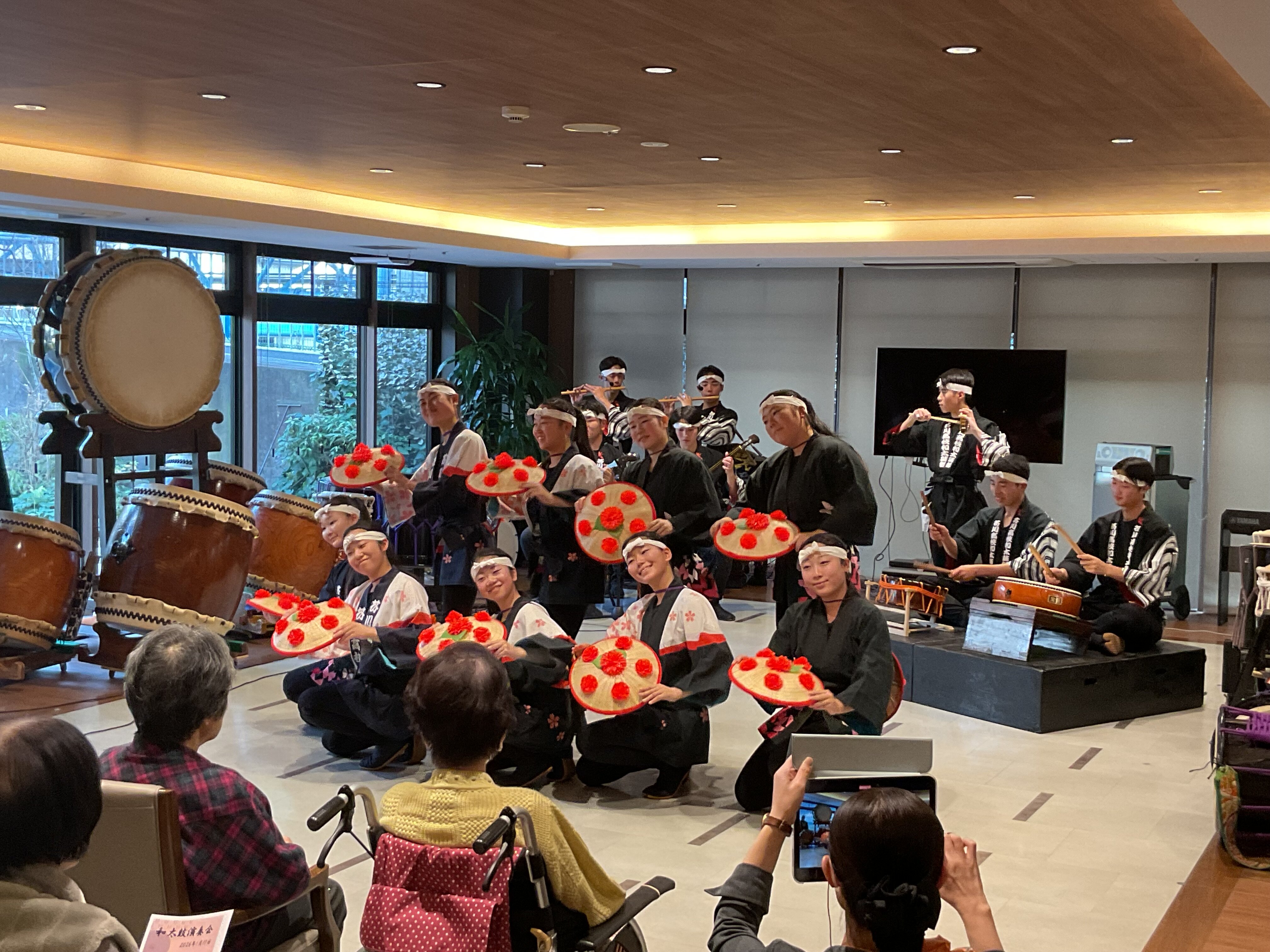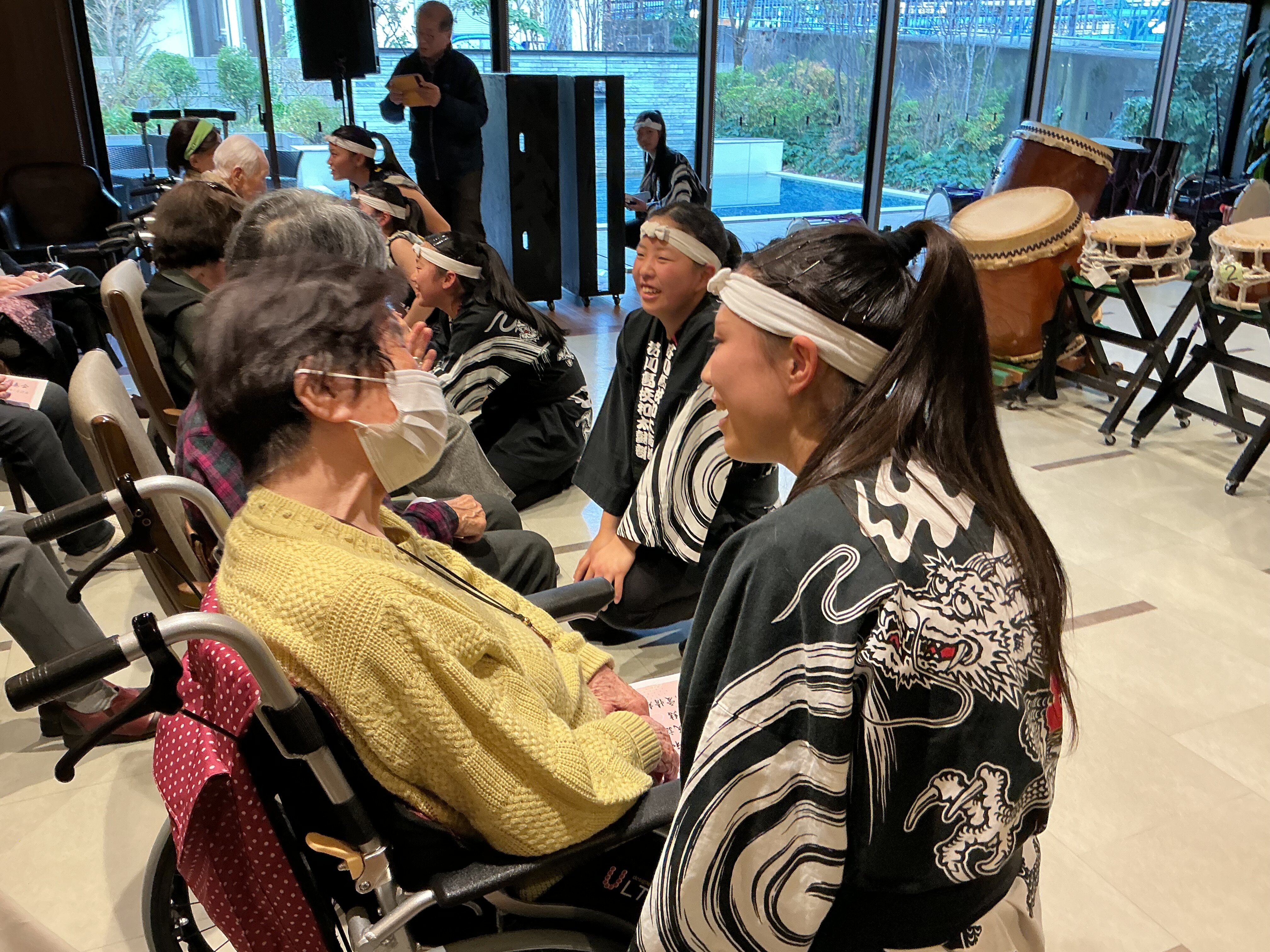 一打一打に魂を込めて叩く姿に、入居者の皆様も身を乗り出すようにして