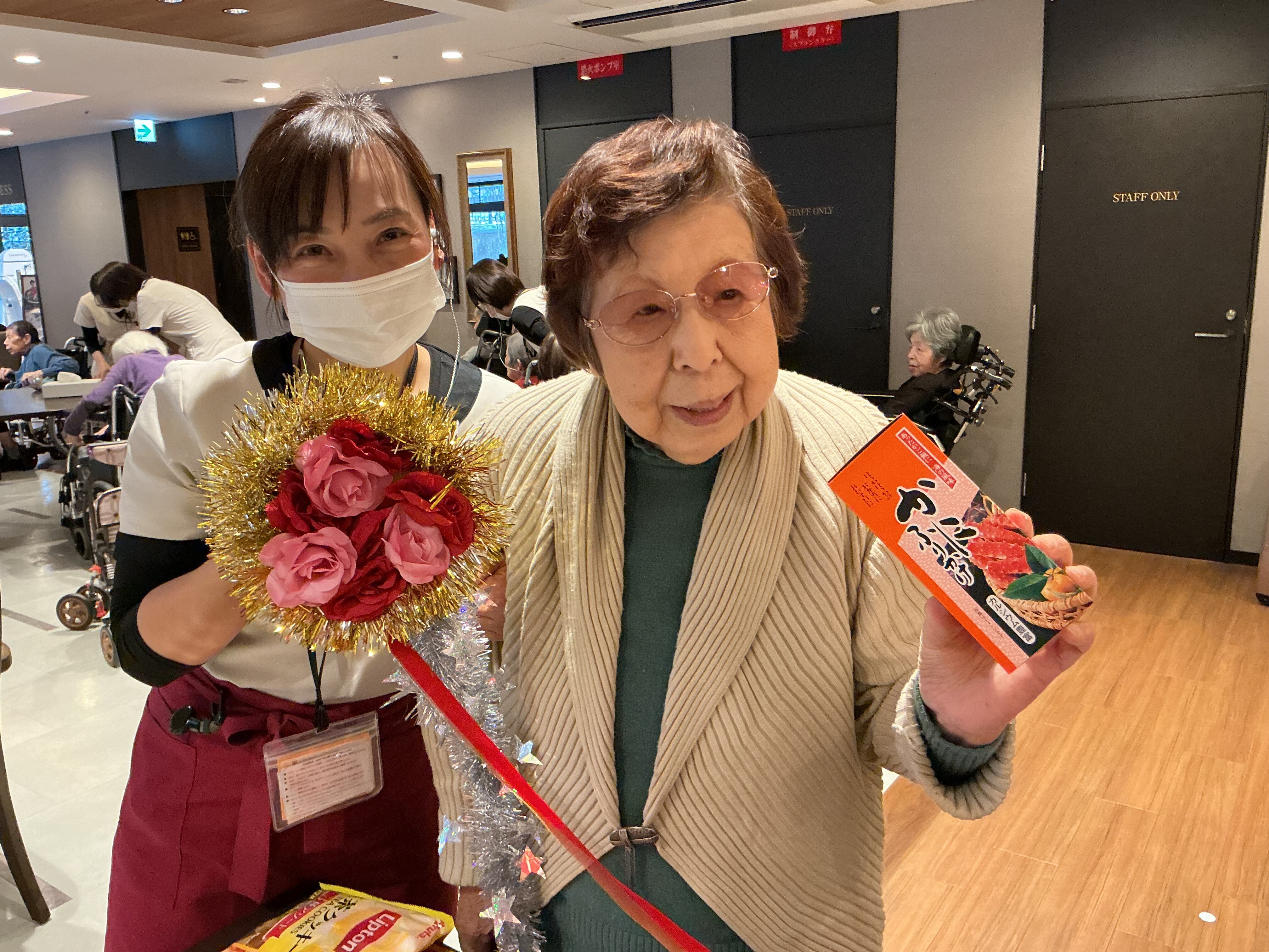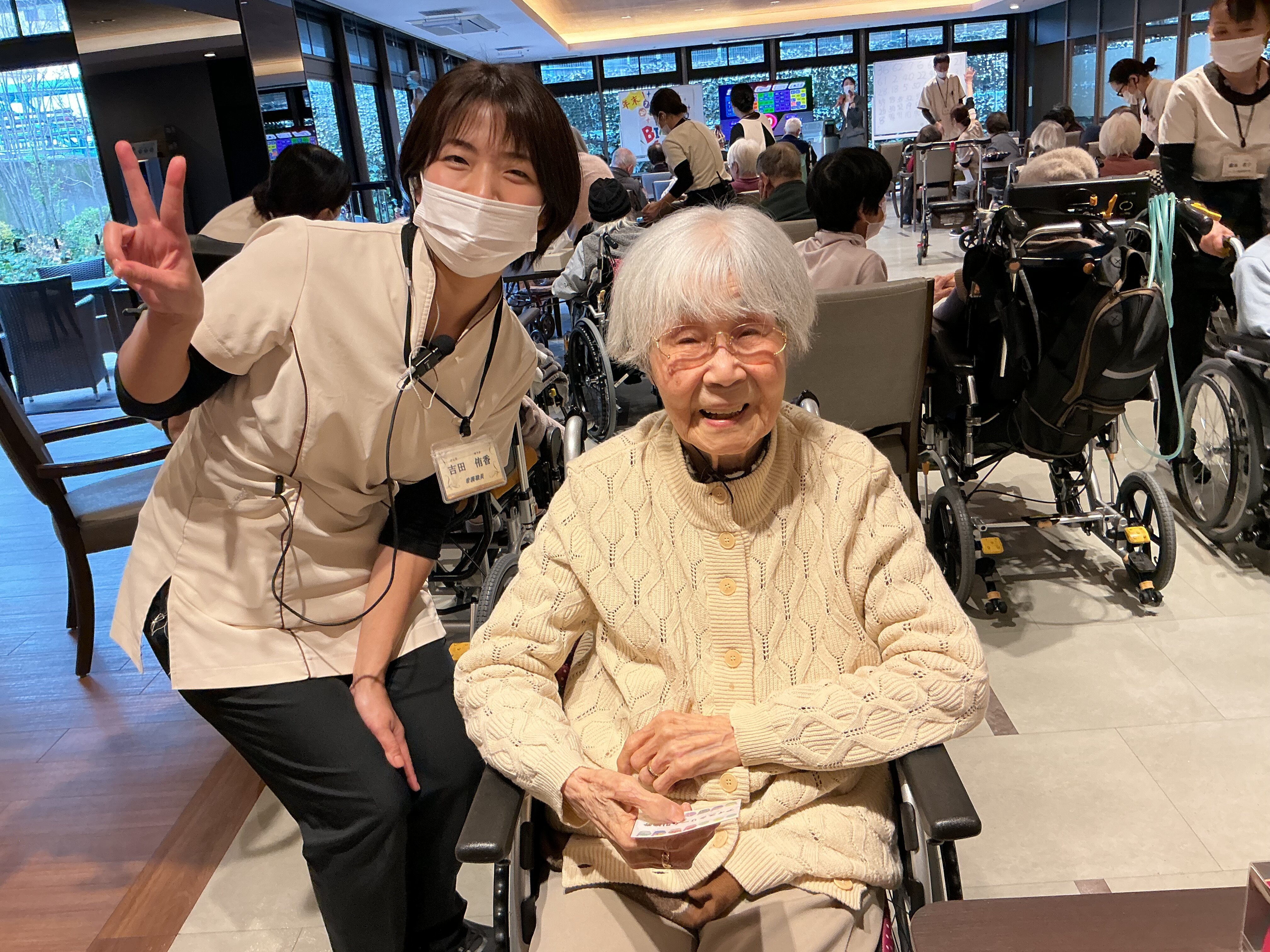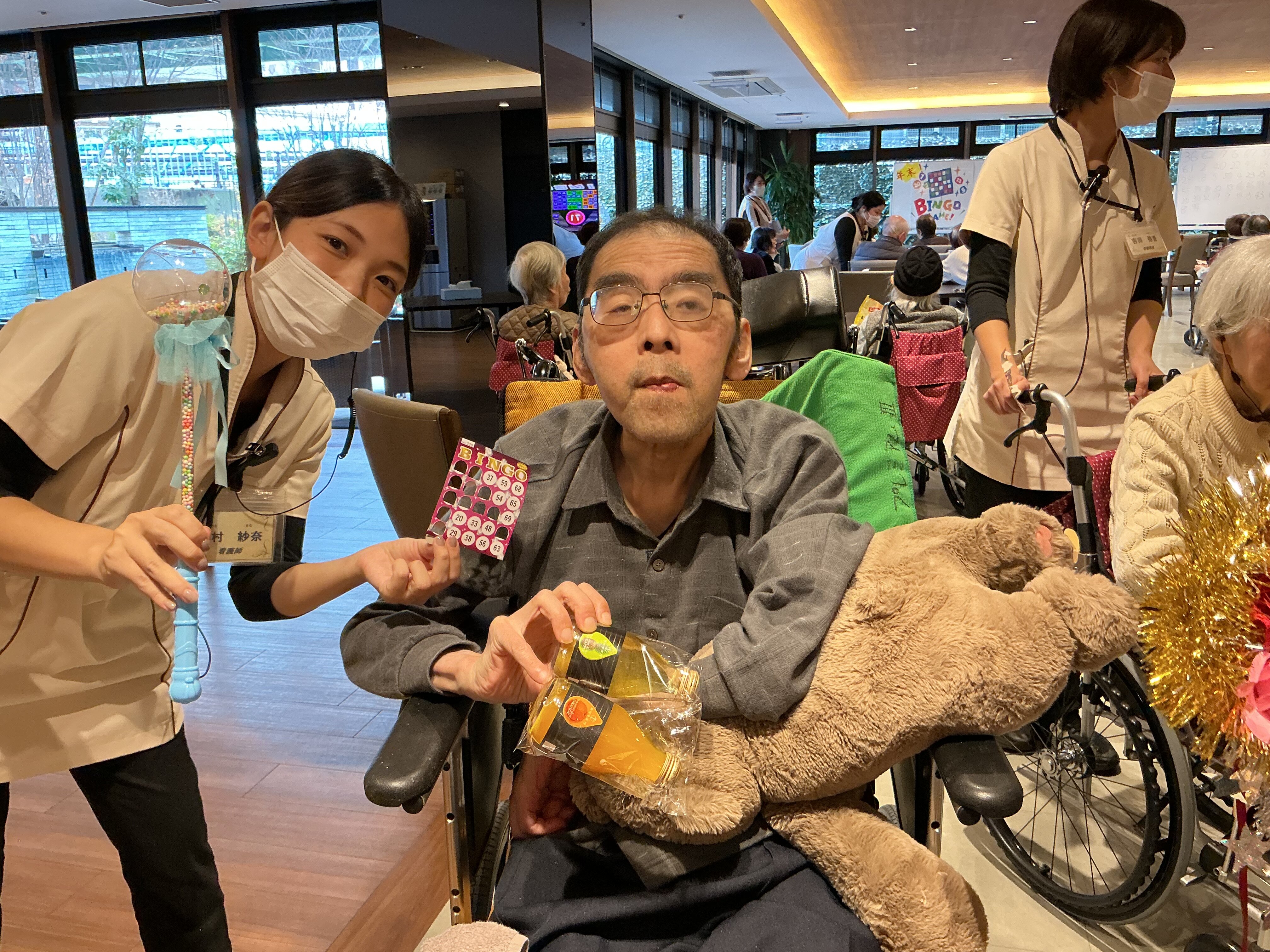 ご入居者の皆様と、職員も一緒に楽しんだ大盛り上がりのビンゴゲーム大会でした♪