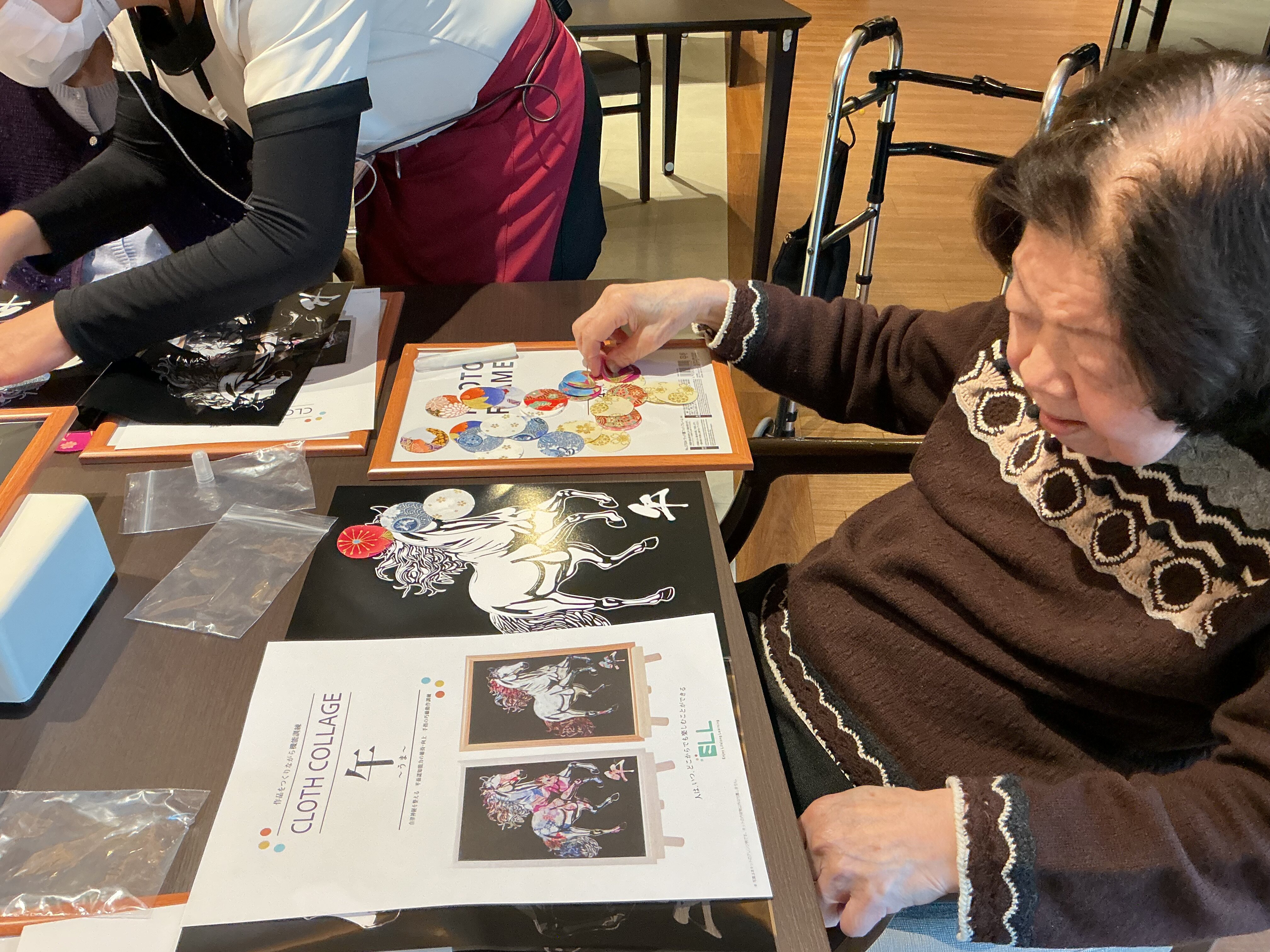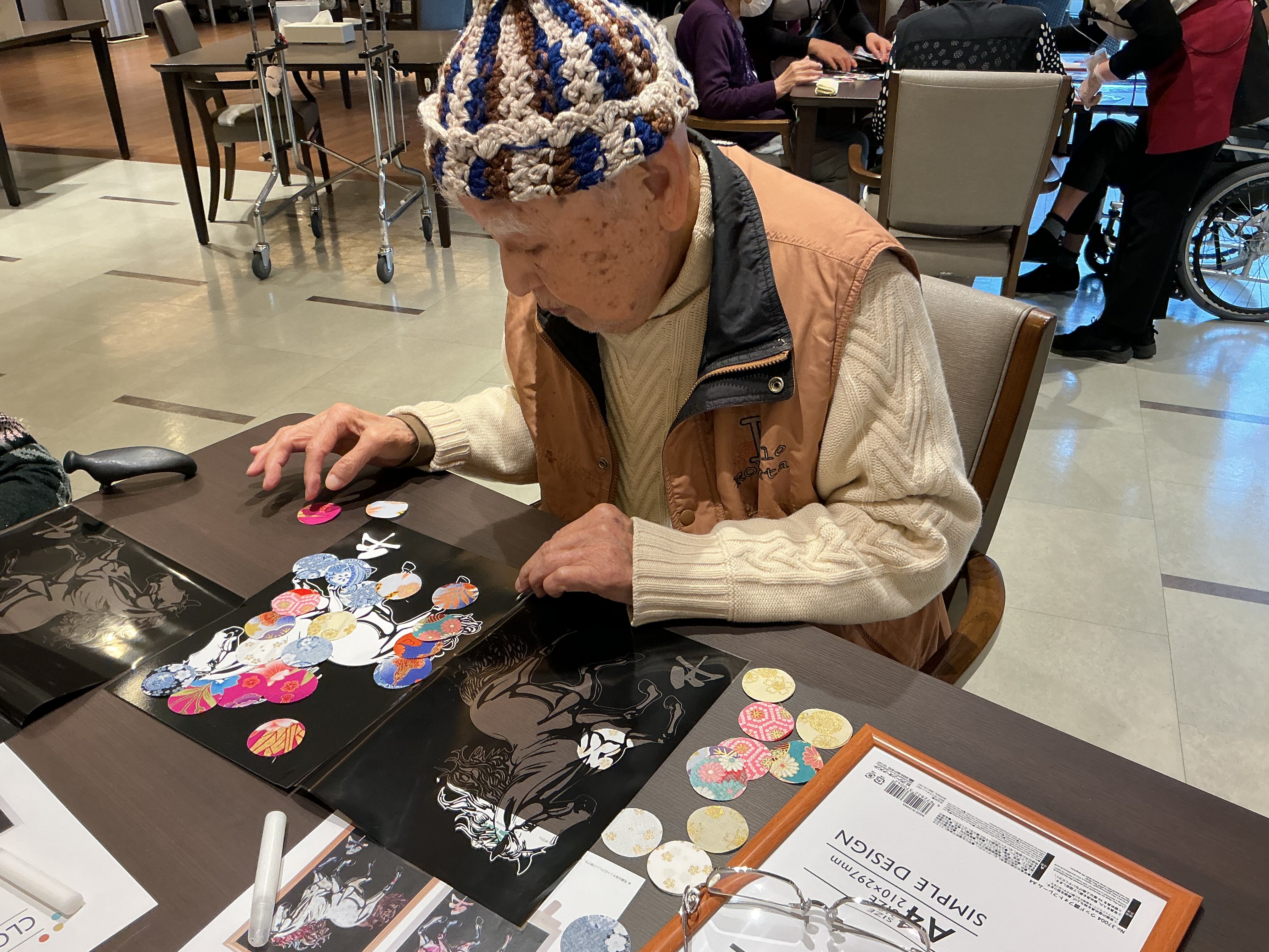クロスコラージュ作りとは、下絵が描かれた台紙に、あらかじめ丸くカットされた