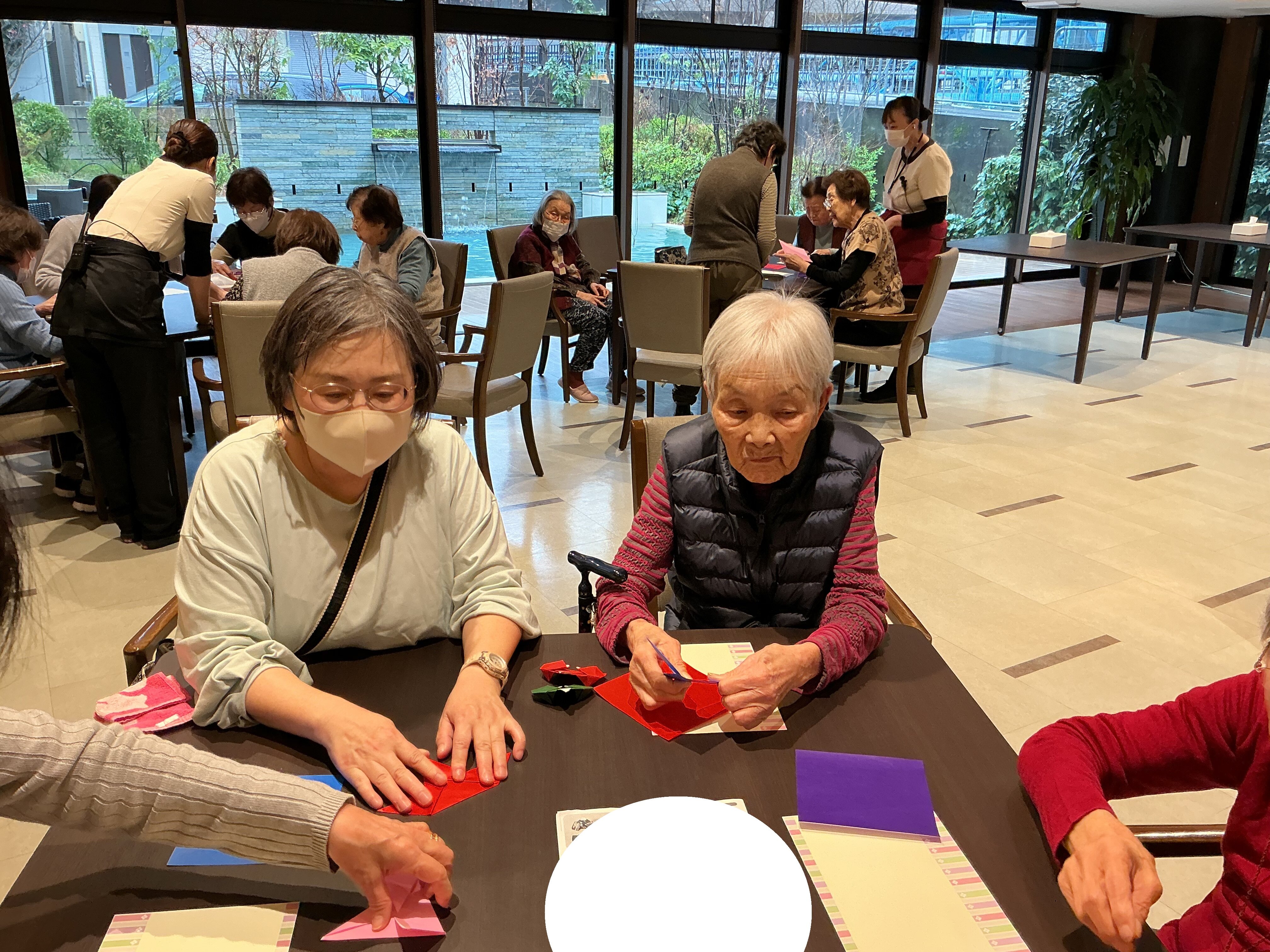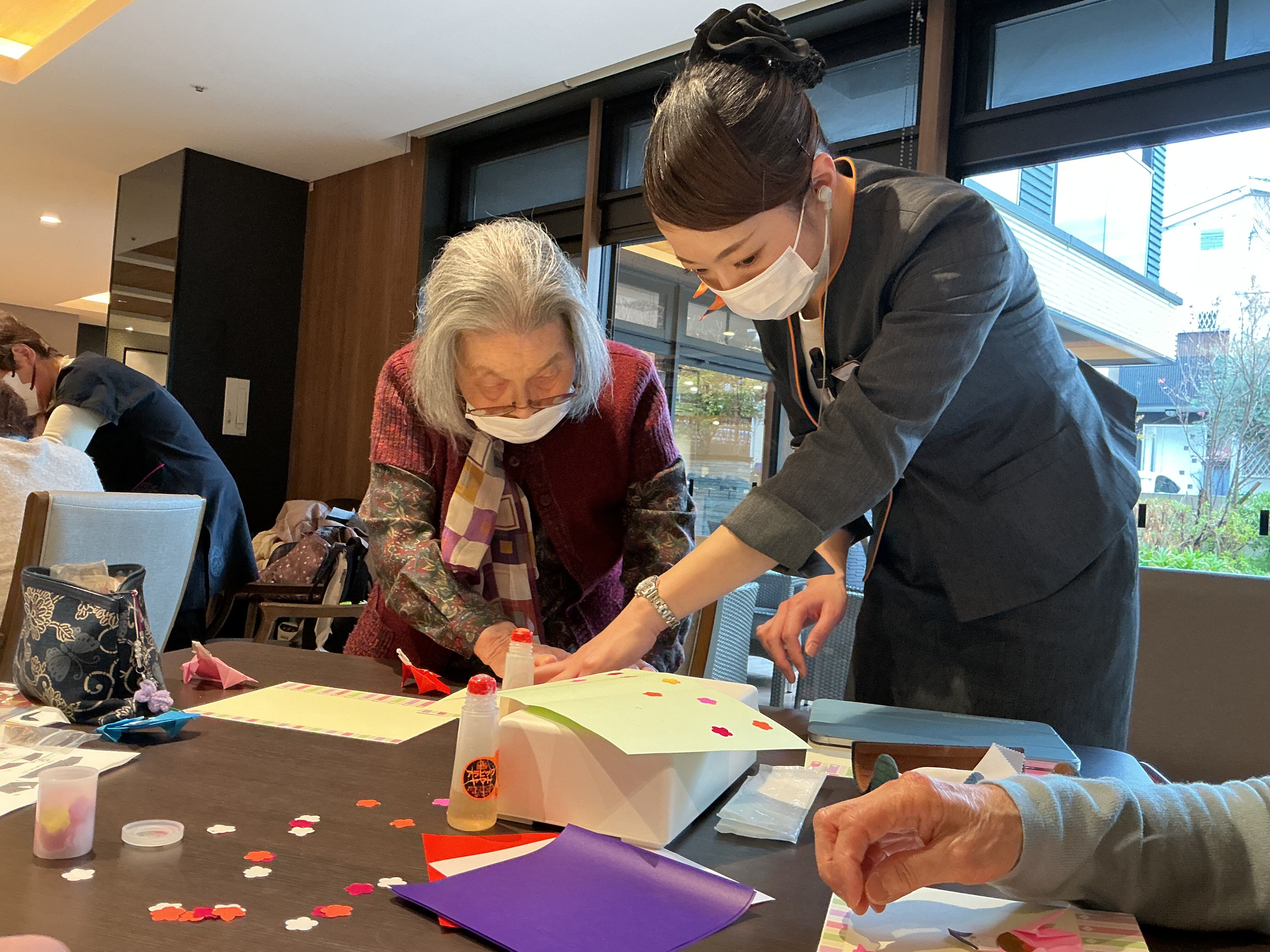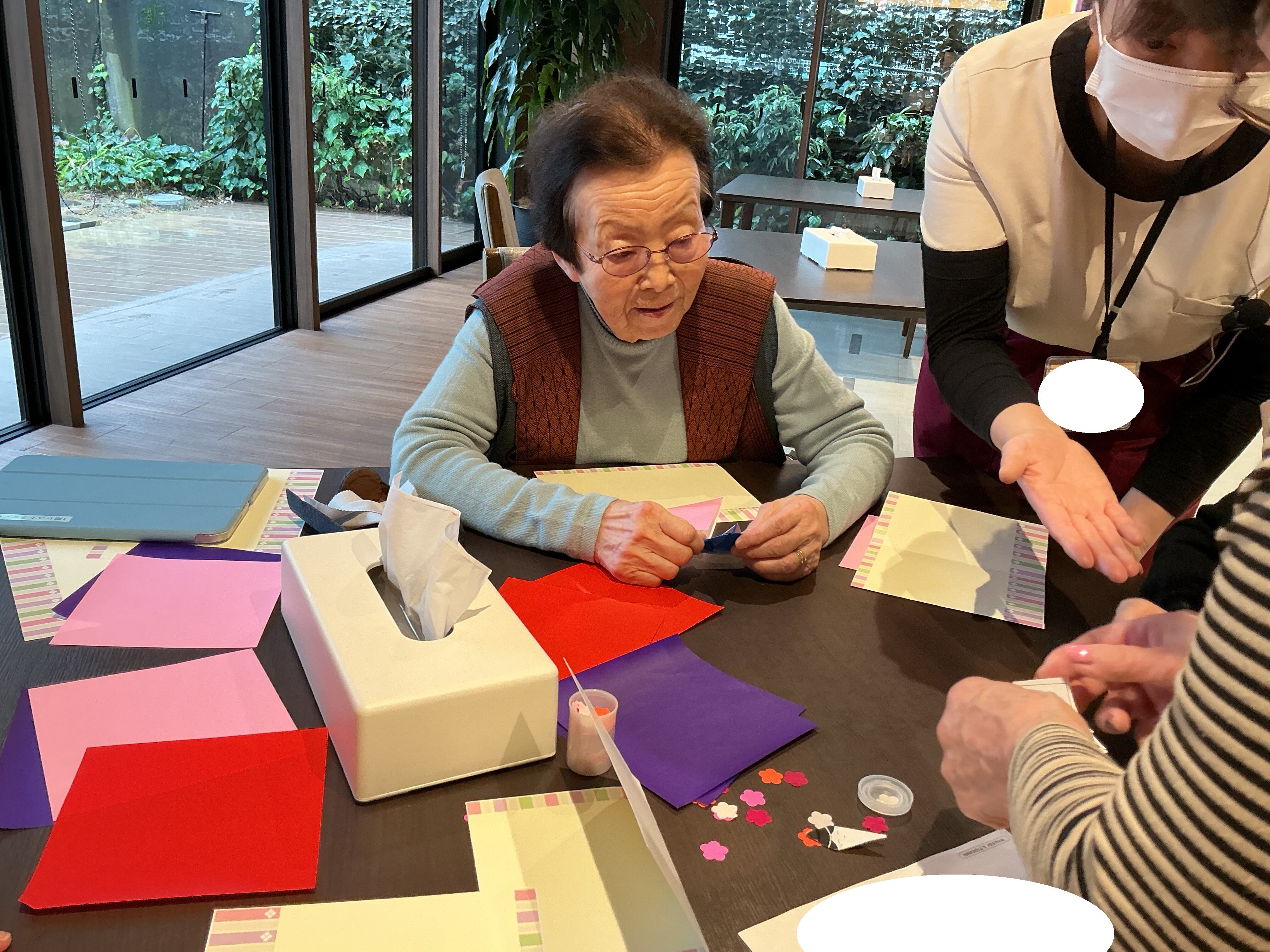 ご入居者同士で教えあいながら、完成が近づいてきました!