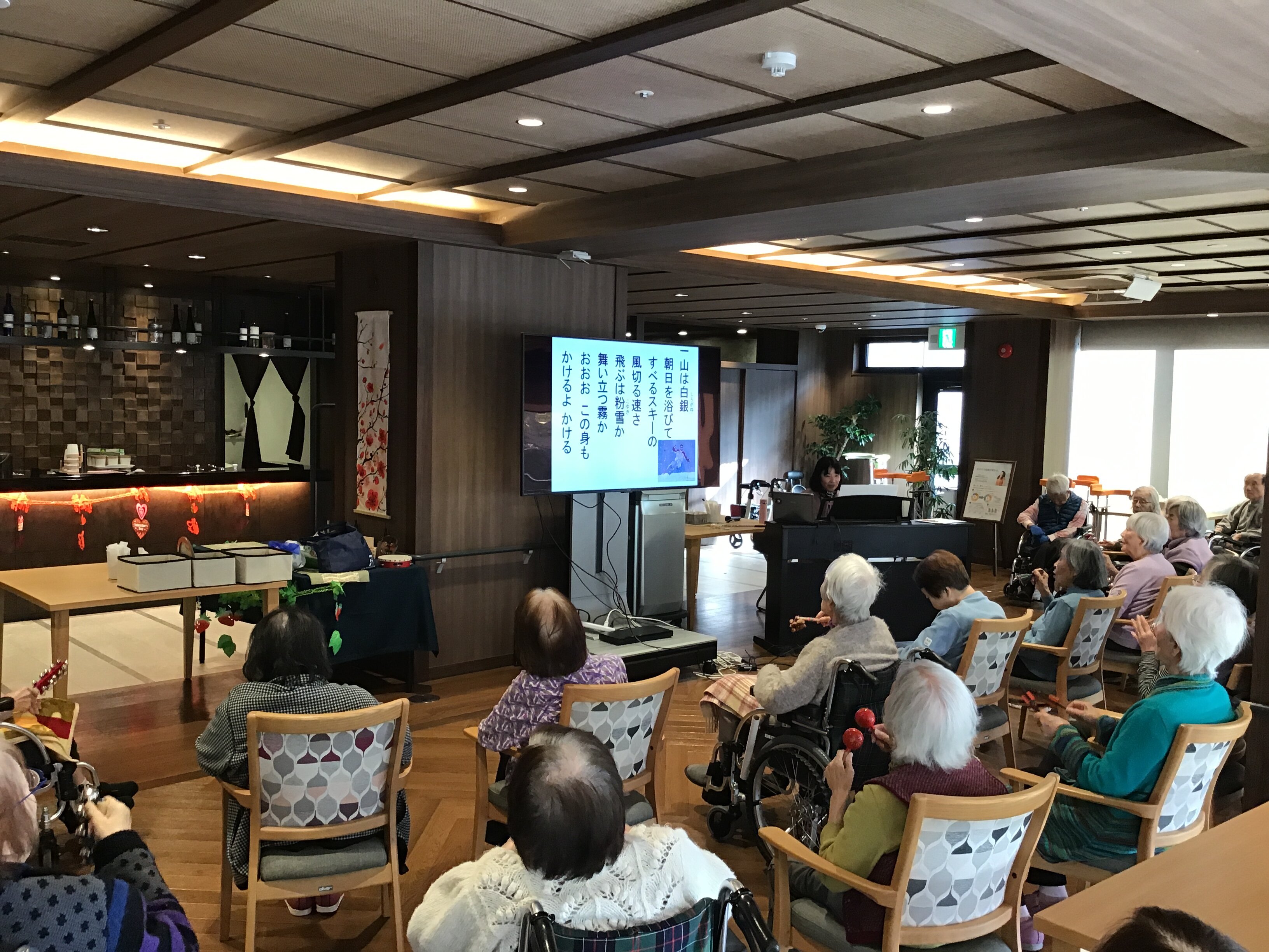 先日、音楽療法士の鳥内先生をお招きし、**「新年を寿ぎ、来たる節分に思いを馳せる」**をテーマにした音楽レクリエーションを開催いたしました(^o^)丿