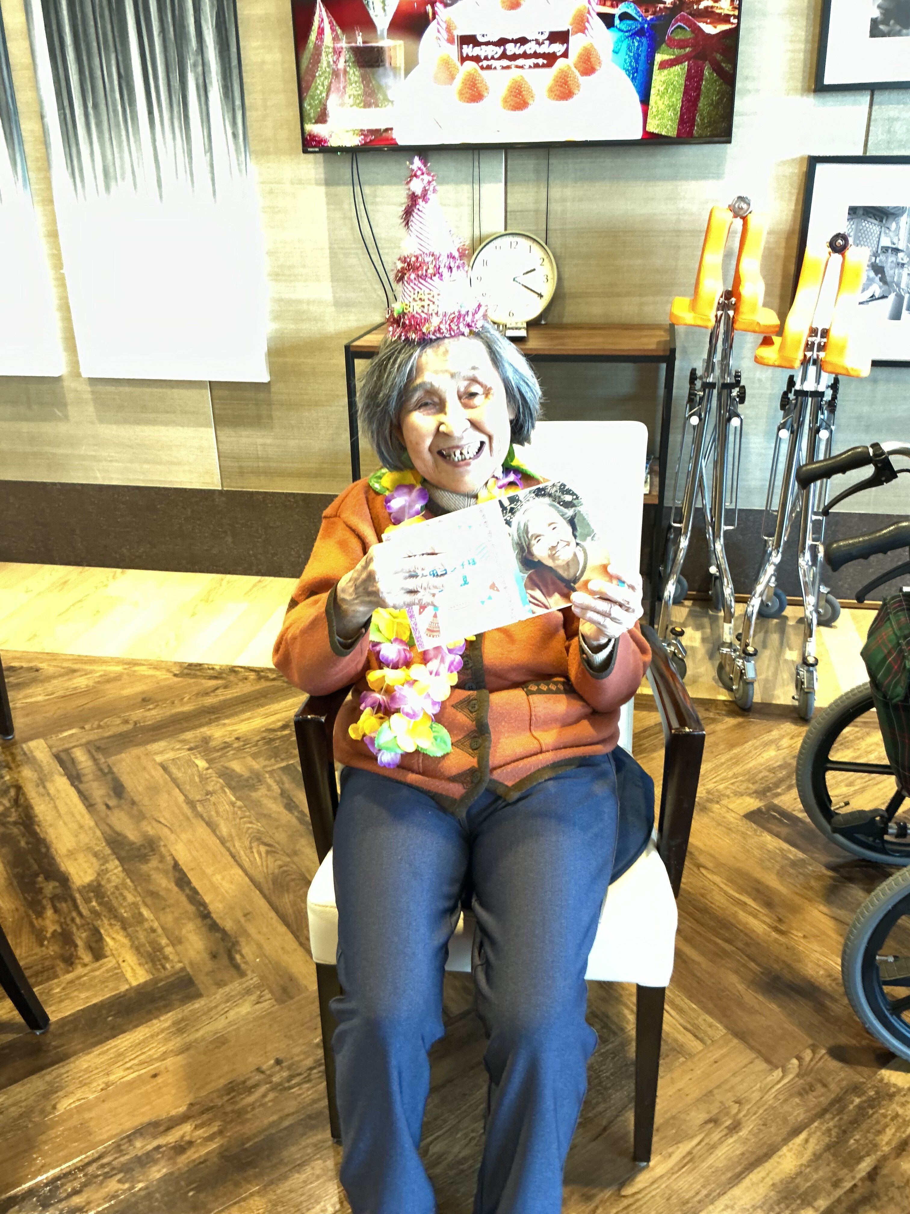 いくつになっても、お誕生日という節目は特別なものです。 ご入居者様のこれまでの歩みに敬意を表するとともに、これからも当施設で健やかで笑顔あふれる毎日を過ごしていただけるよう、スタッフ一同心を込めてお手伝いさせていただきます。