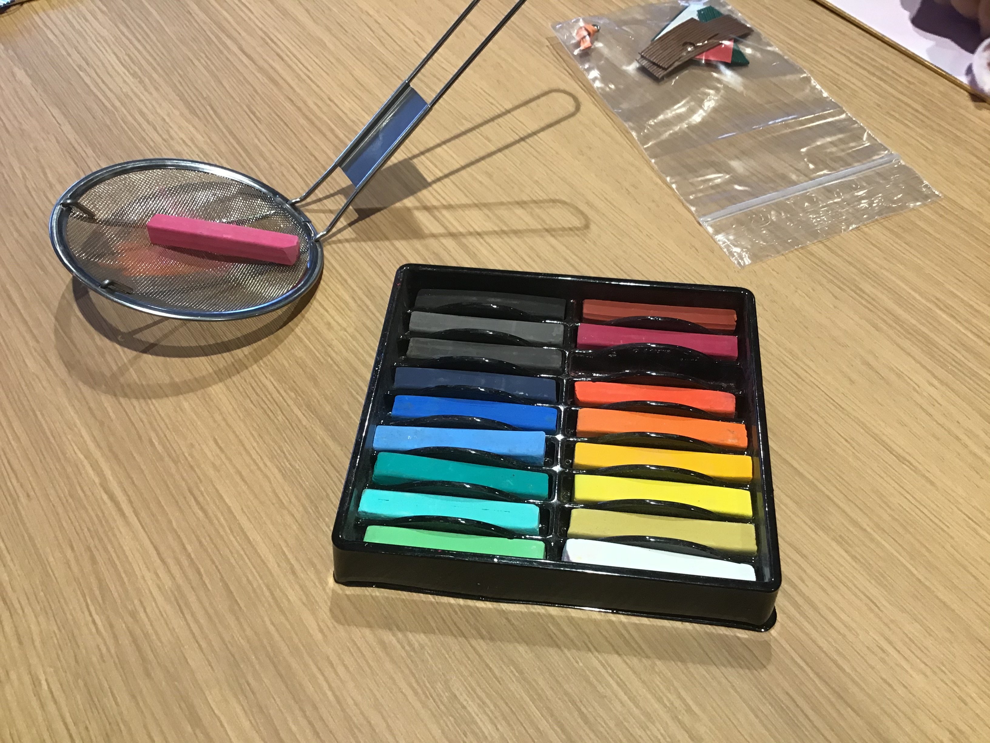 ①まず台紙に、パステルを使って色味を付けていきます。