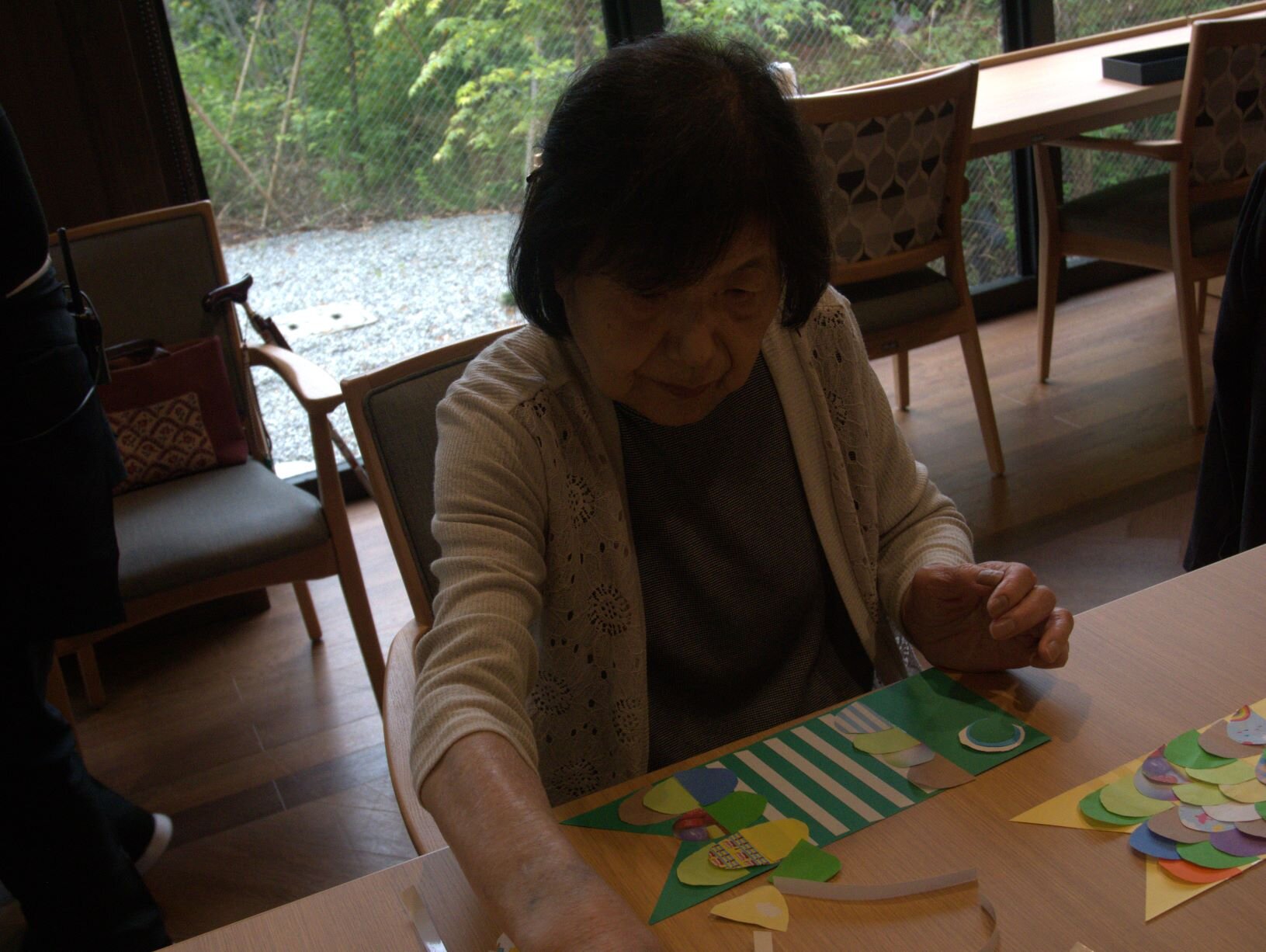 場所は夕方のレストラン、ご入居者にお集まり頂きました☆