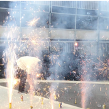 見て楽しんで、食べて楽しんでください!」藁を火にくべると、一気に火が付き煙が上がります。