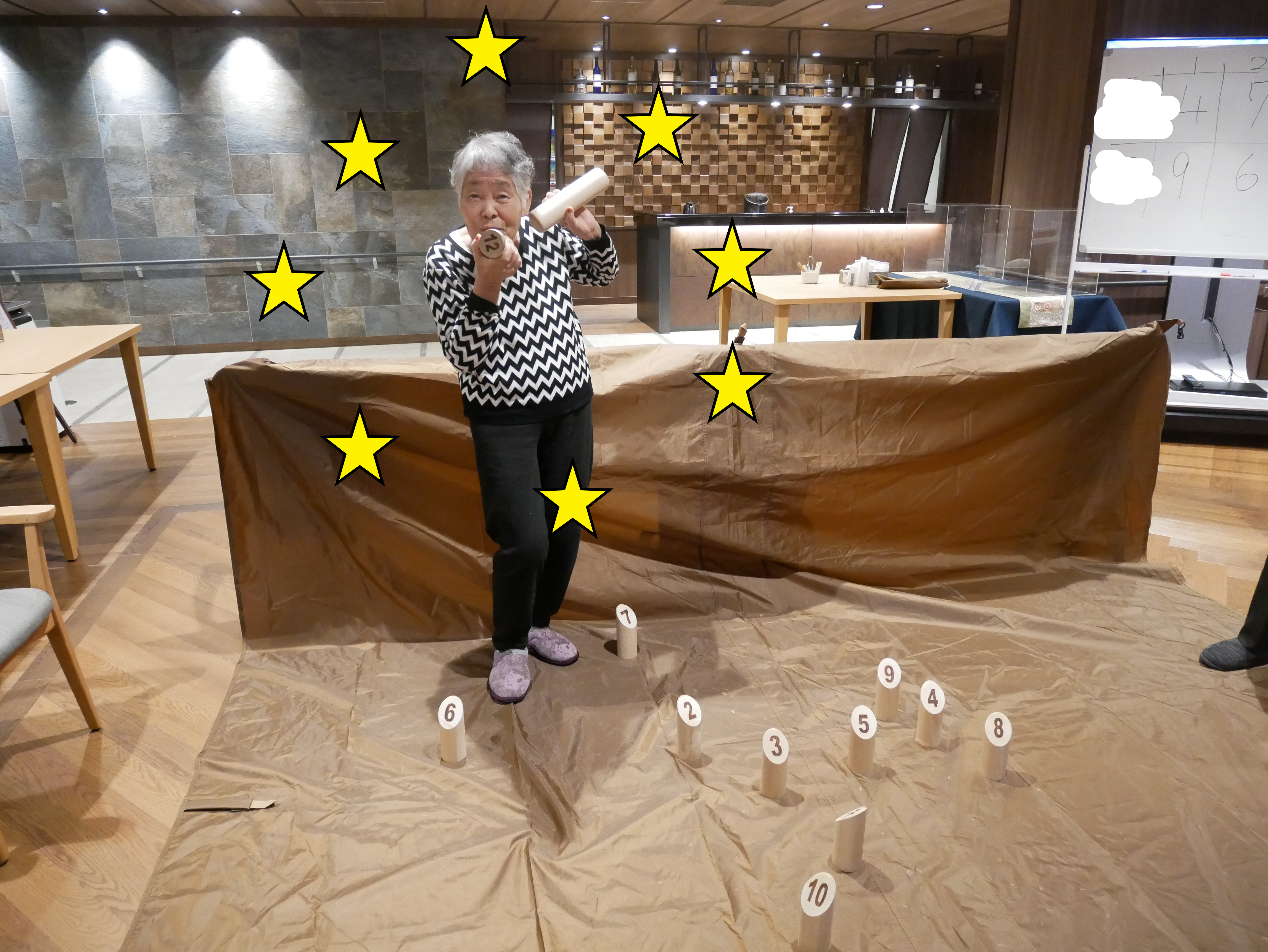 「おおおおお~すごい倒れたよ、何点かしら」などなど 投げる側も見る側もワクワクドキドキ☆彡