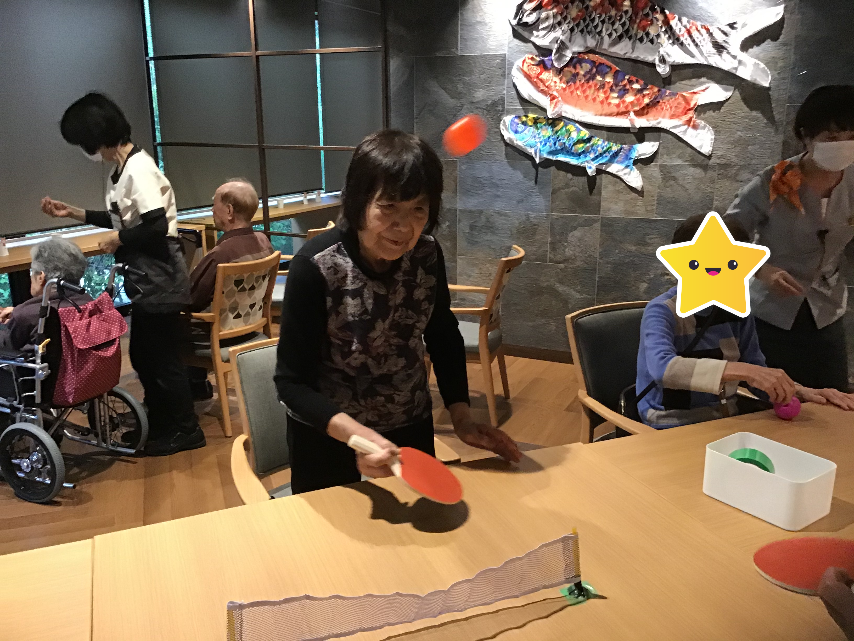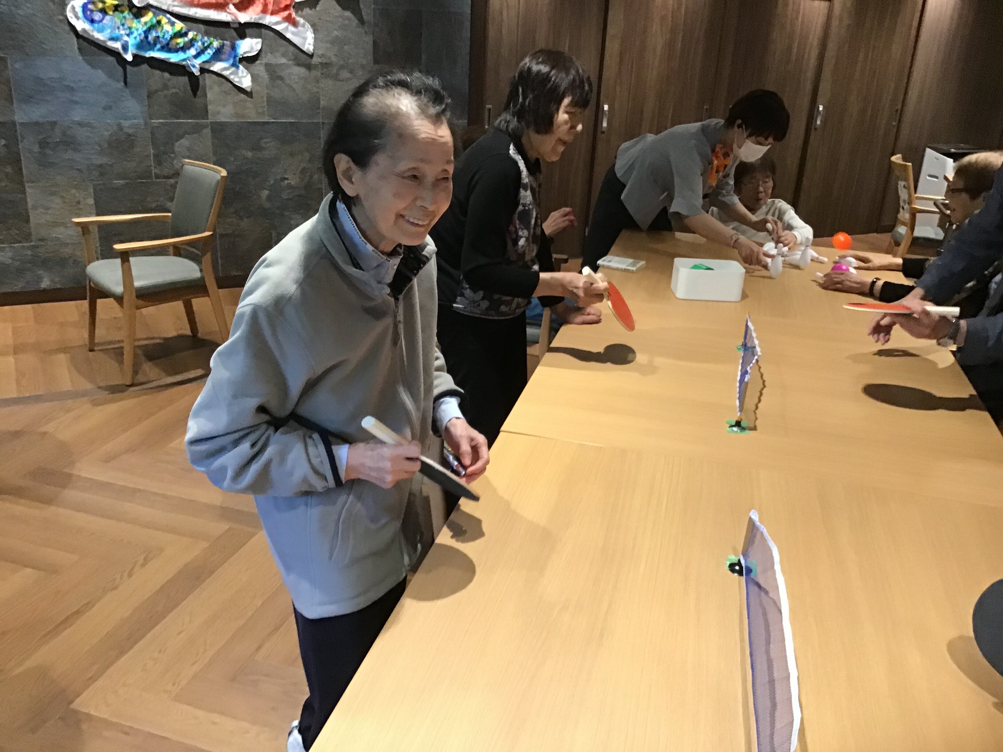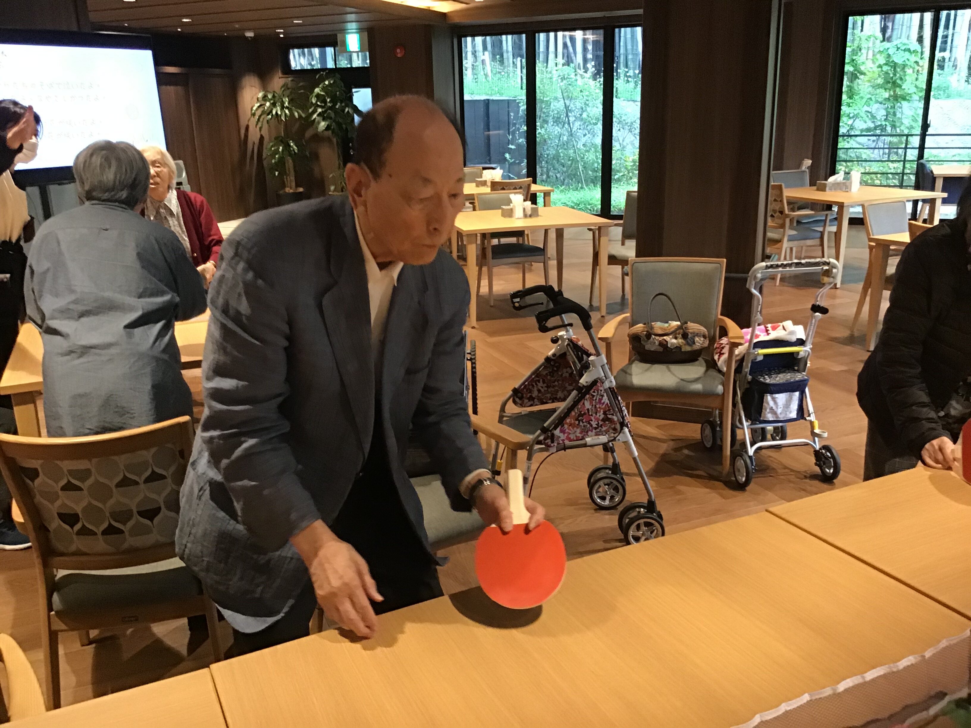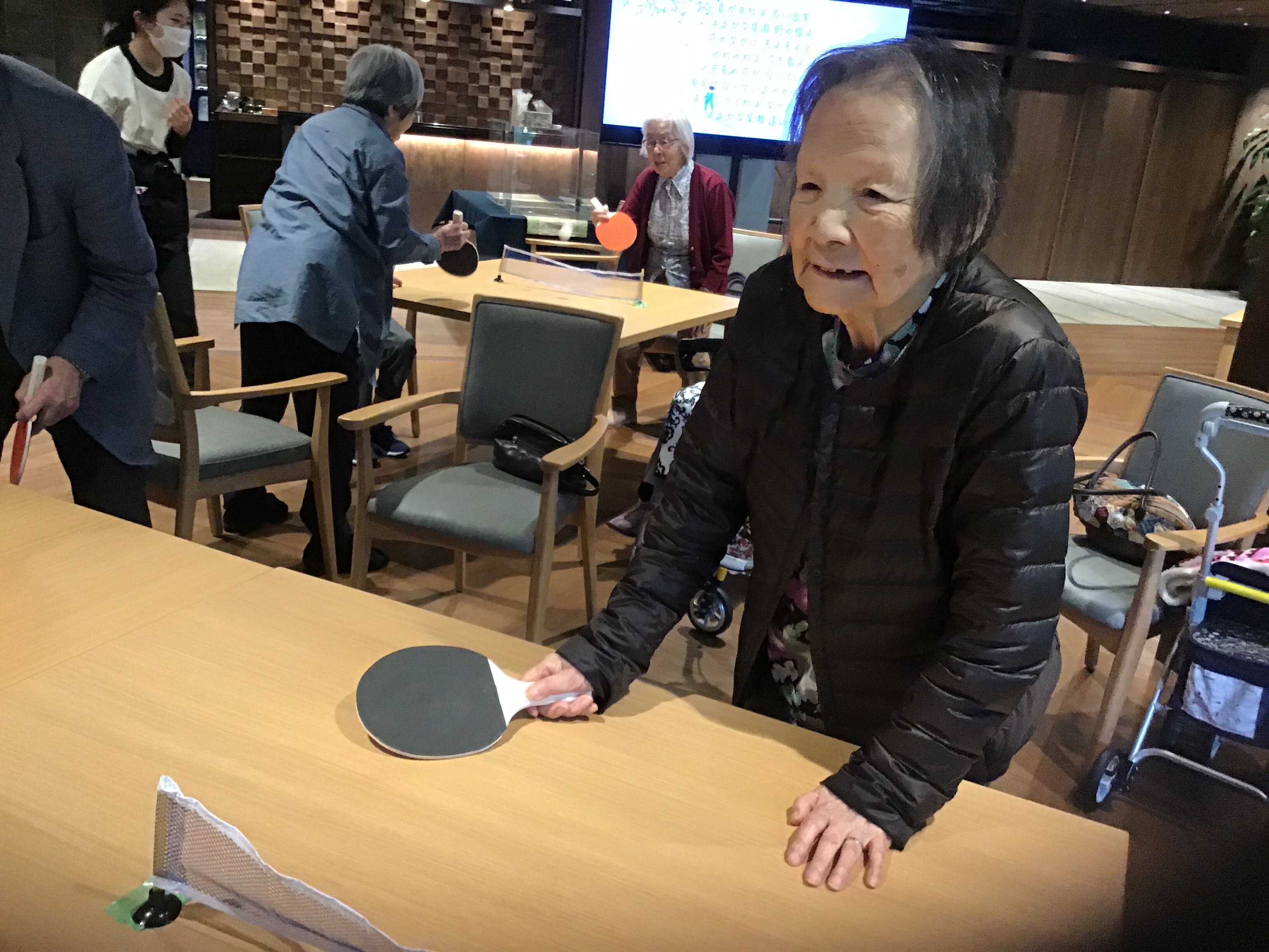 簡易ネットではございますが、ラケット片手に卓球を楽しんでいらっしゃいました。