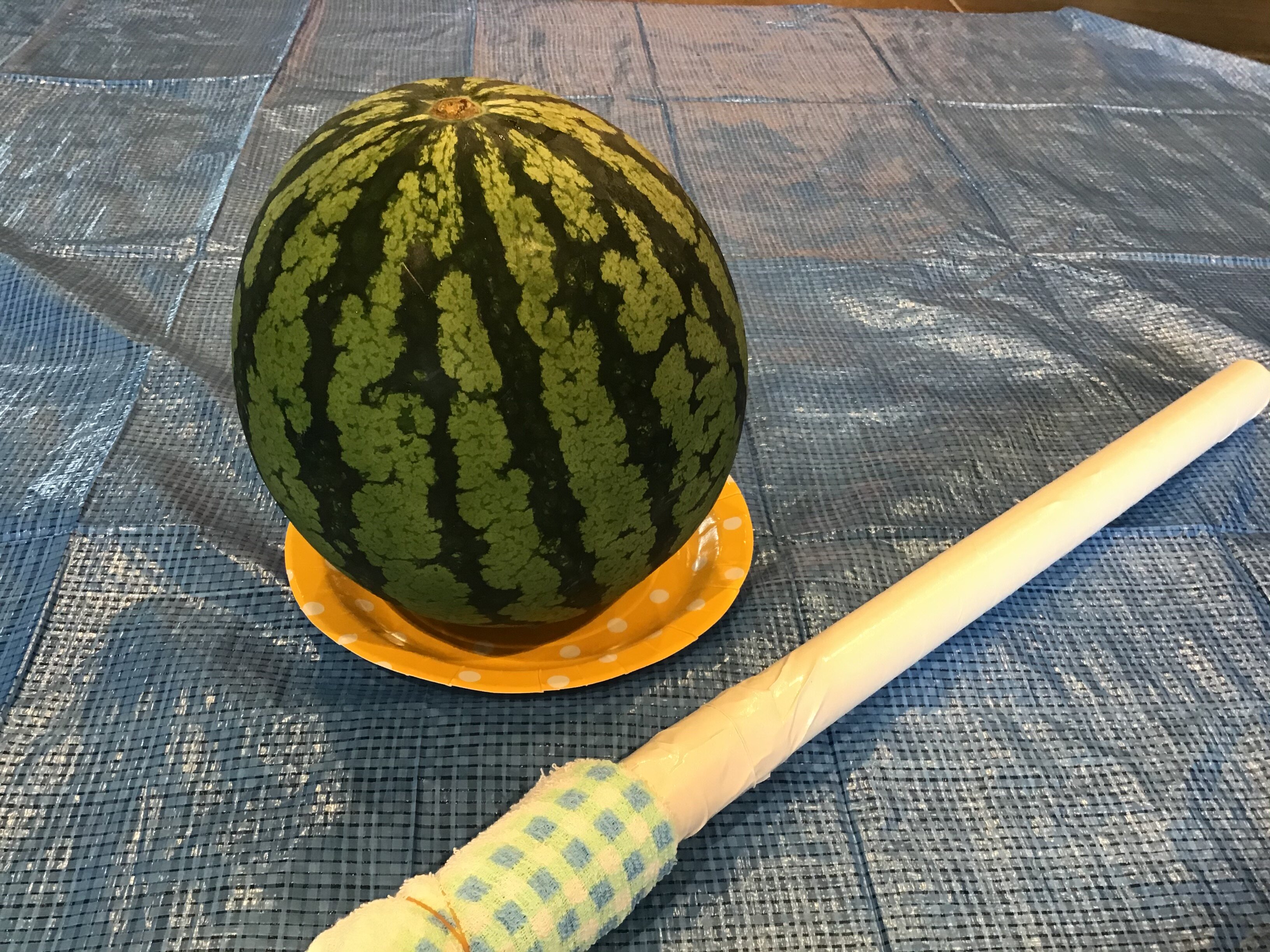 目隠しをして頂き、大きな丸いスイカを思いっきり叩いて頂きます☆