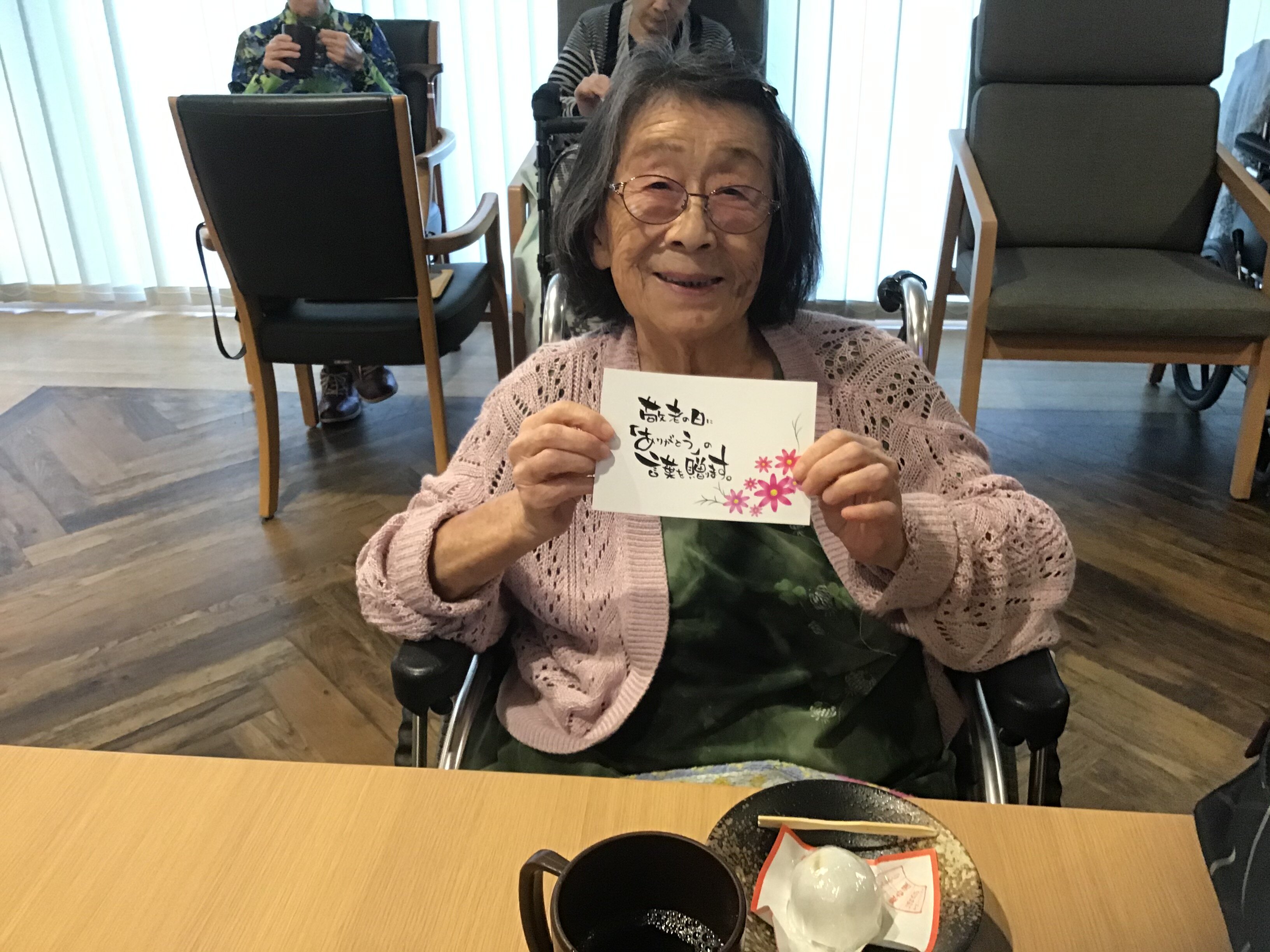 また、敬老の日を祝って、施設より和菓子を提供させていただきました!!