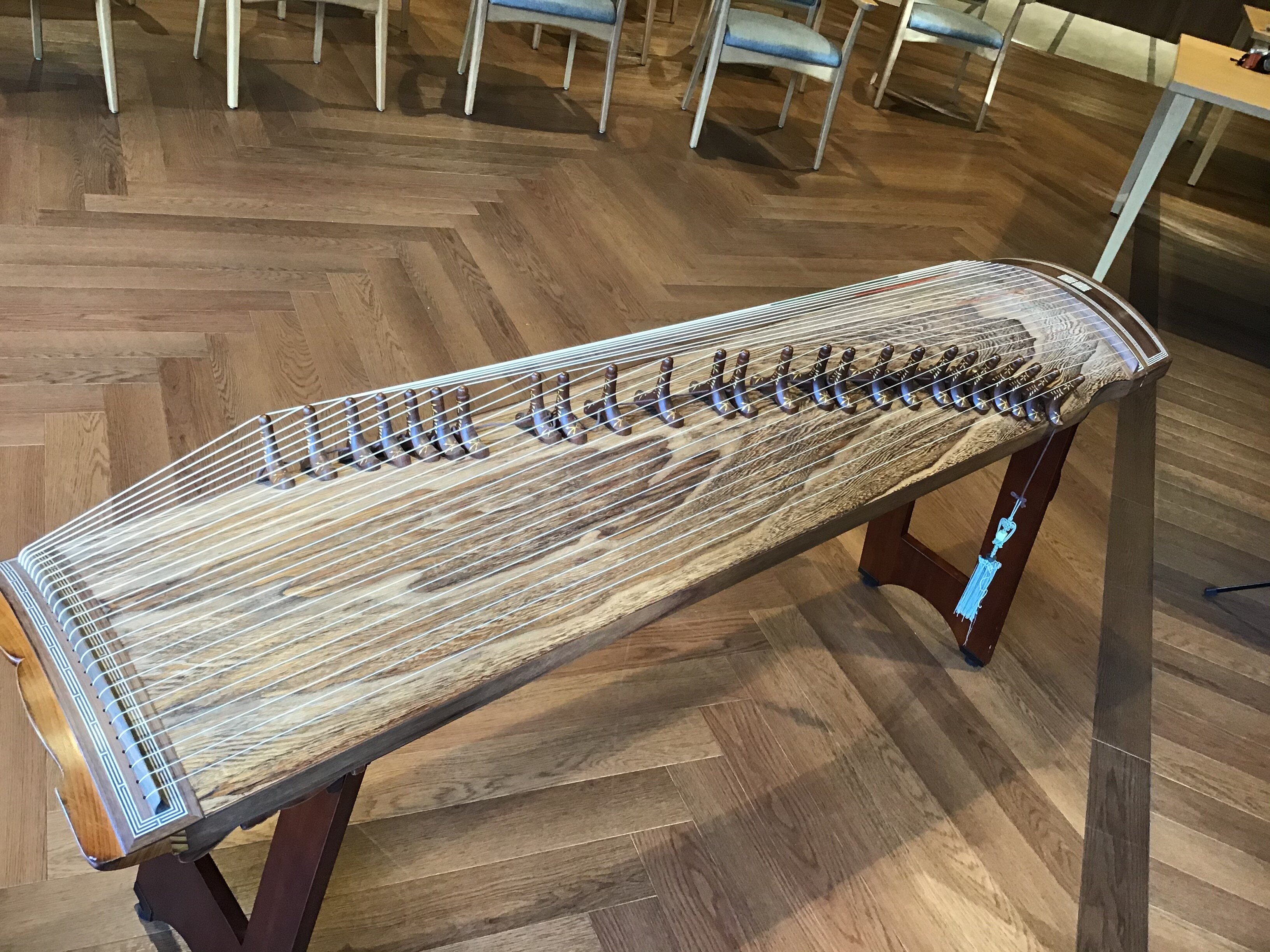 韓国の琴は、基本は13弦ですが、時代に合わせて25弦になり、様々なメロディーを奏でることができるそうです。