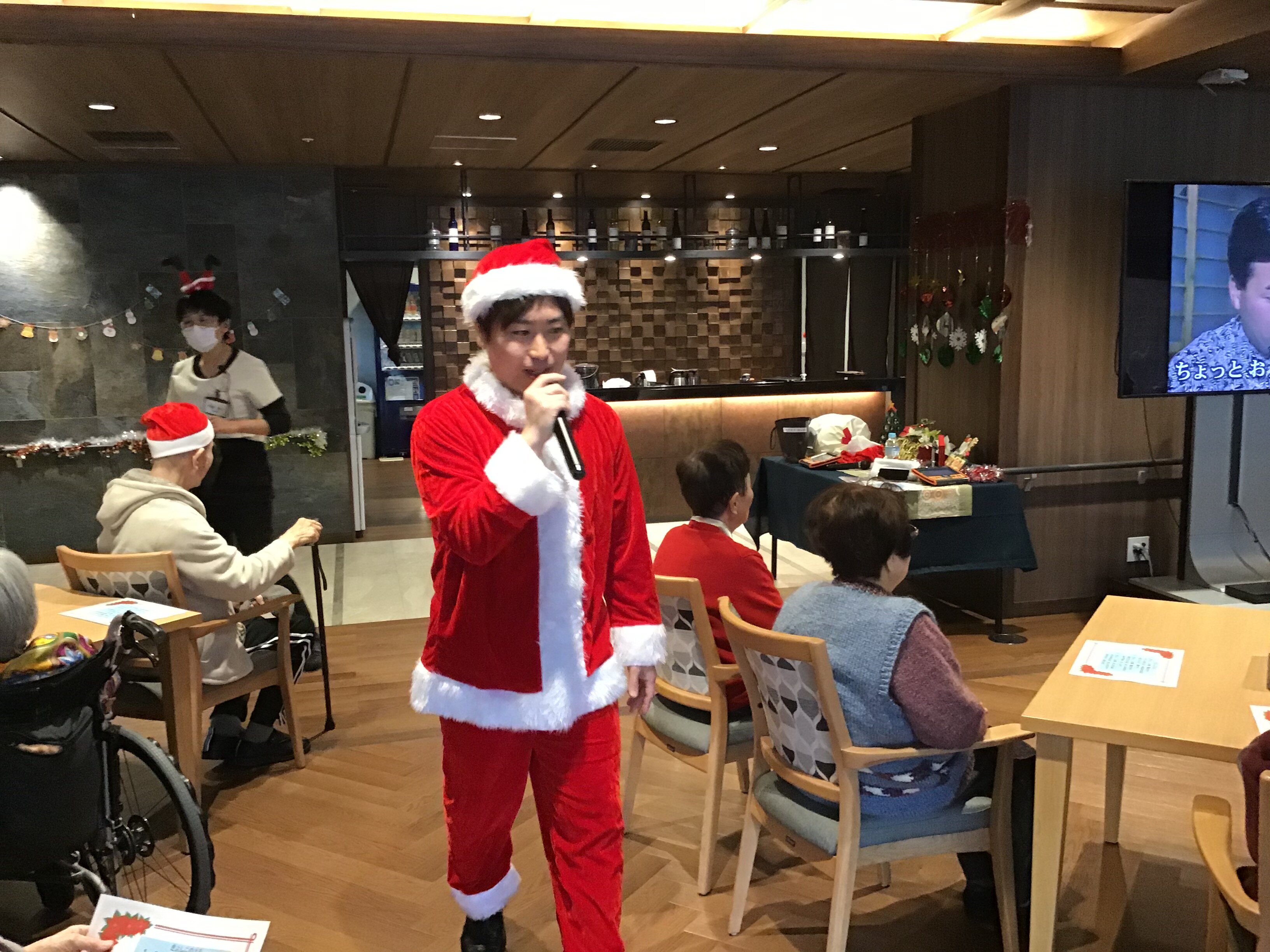 サンタの格好をした歌手に皆様大喜び!!