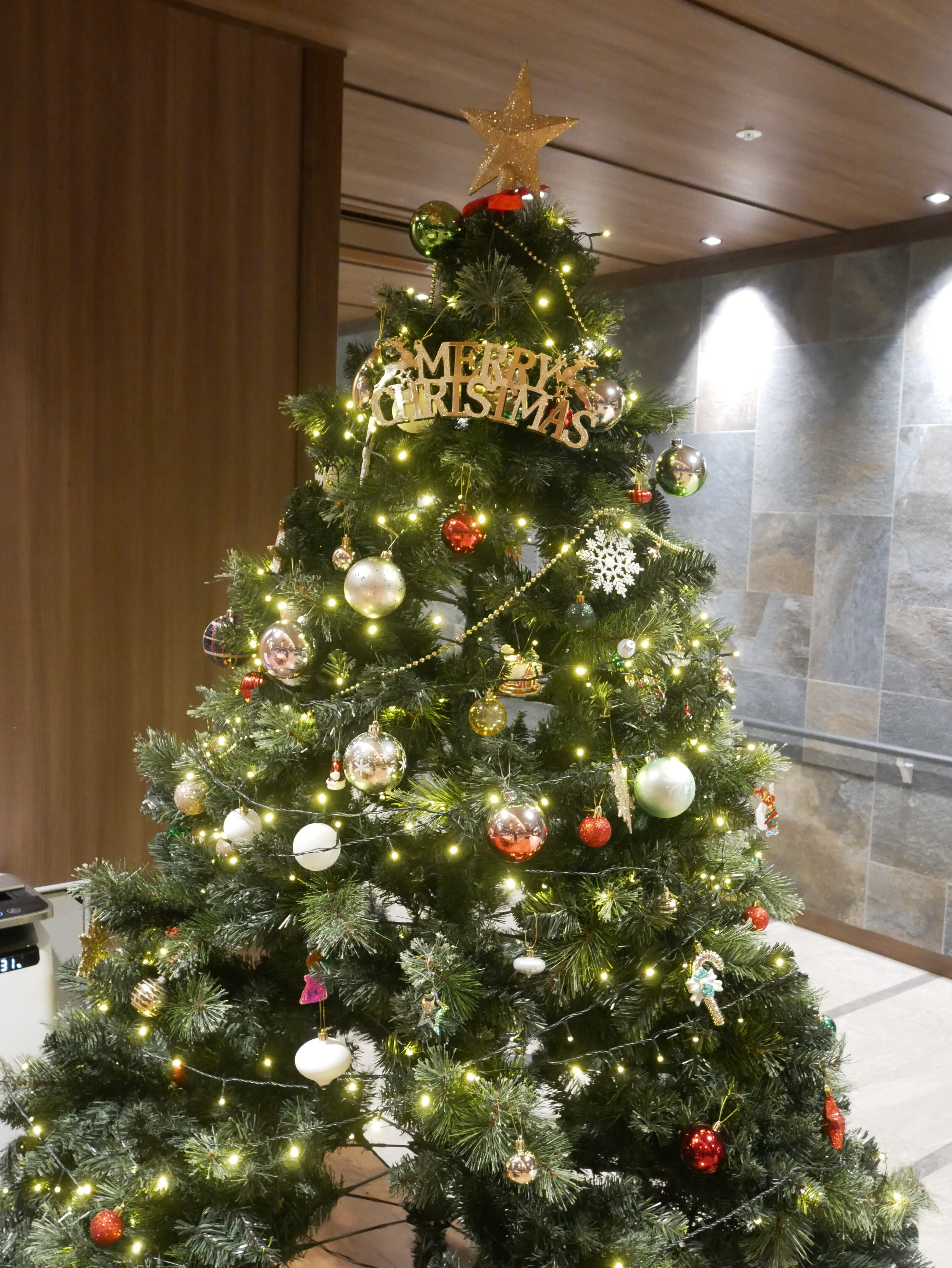 皆様にお手伝いいただき、立派なクリスマスツリーが完成いたしました~