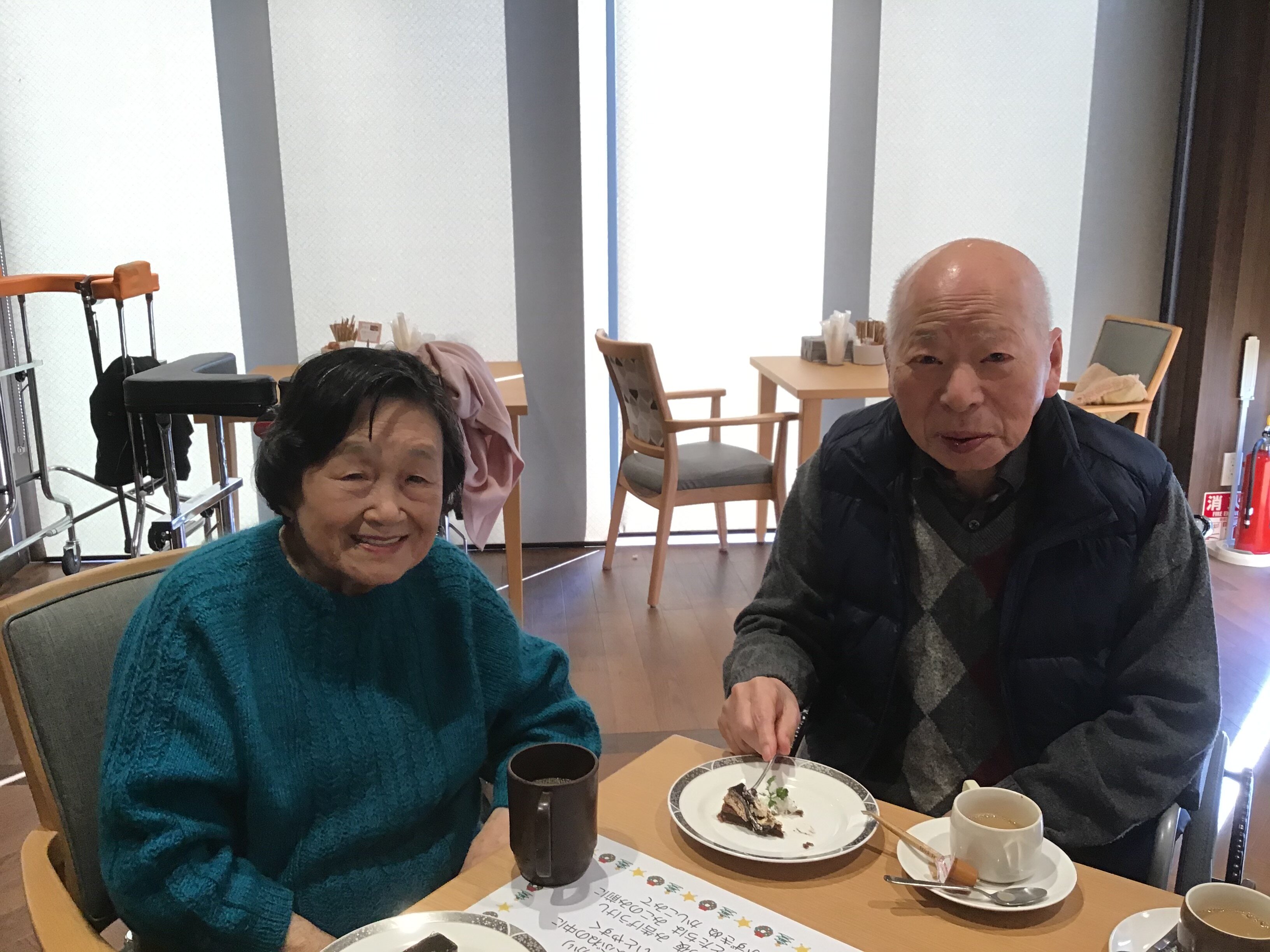 クリスマスケーキとしてチョコレートケーキを皆で一緒に♪