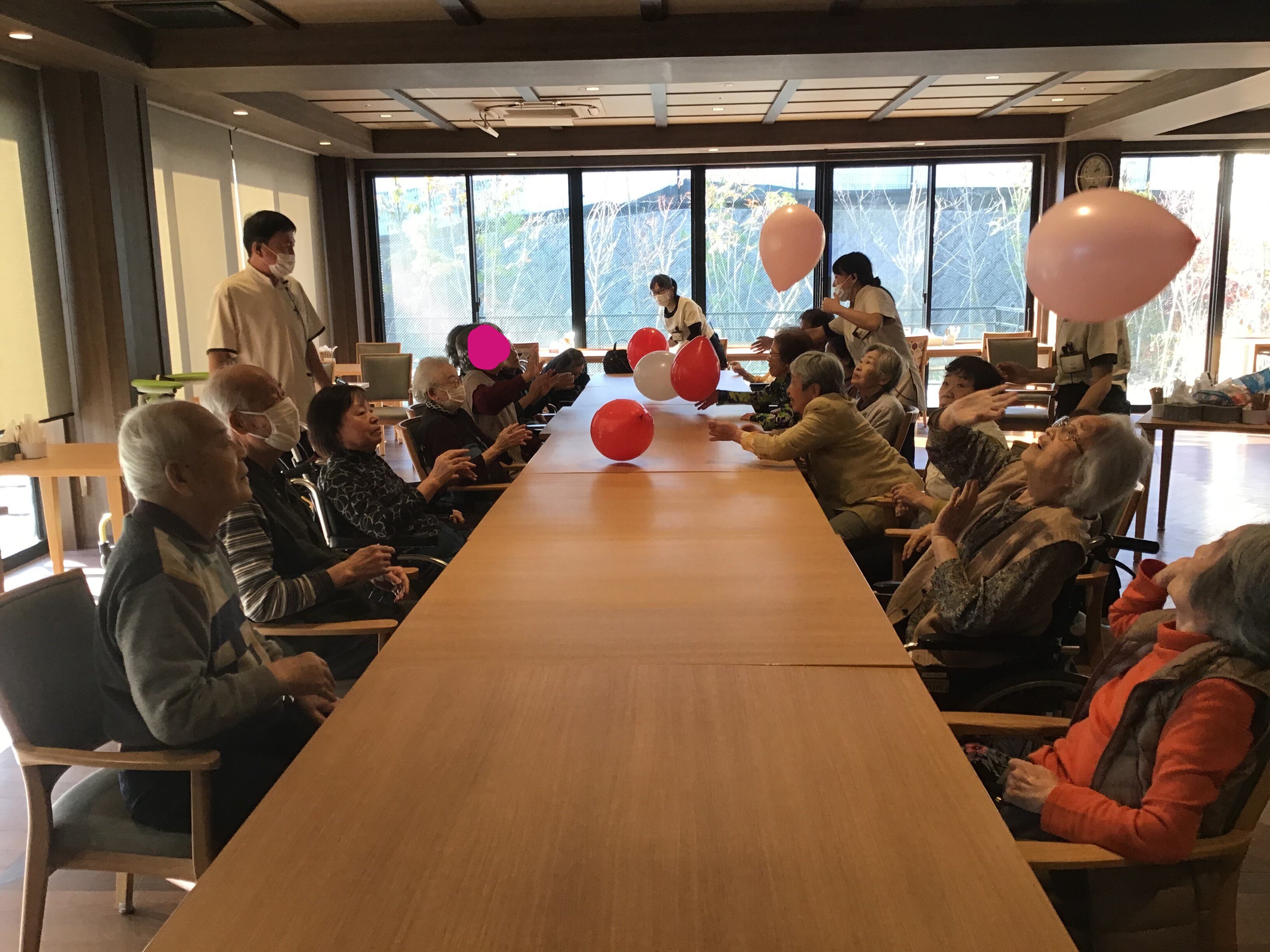 先日は、みなさんで「風船バレー」をしましたので、そちらのご様子をご紹介します。