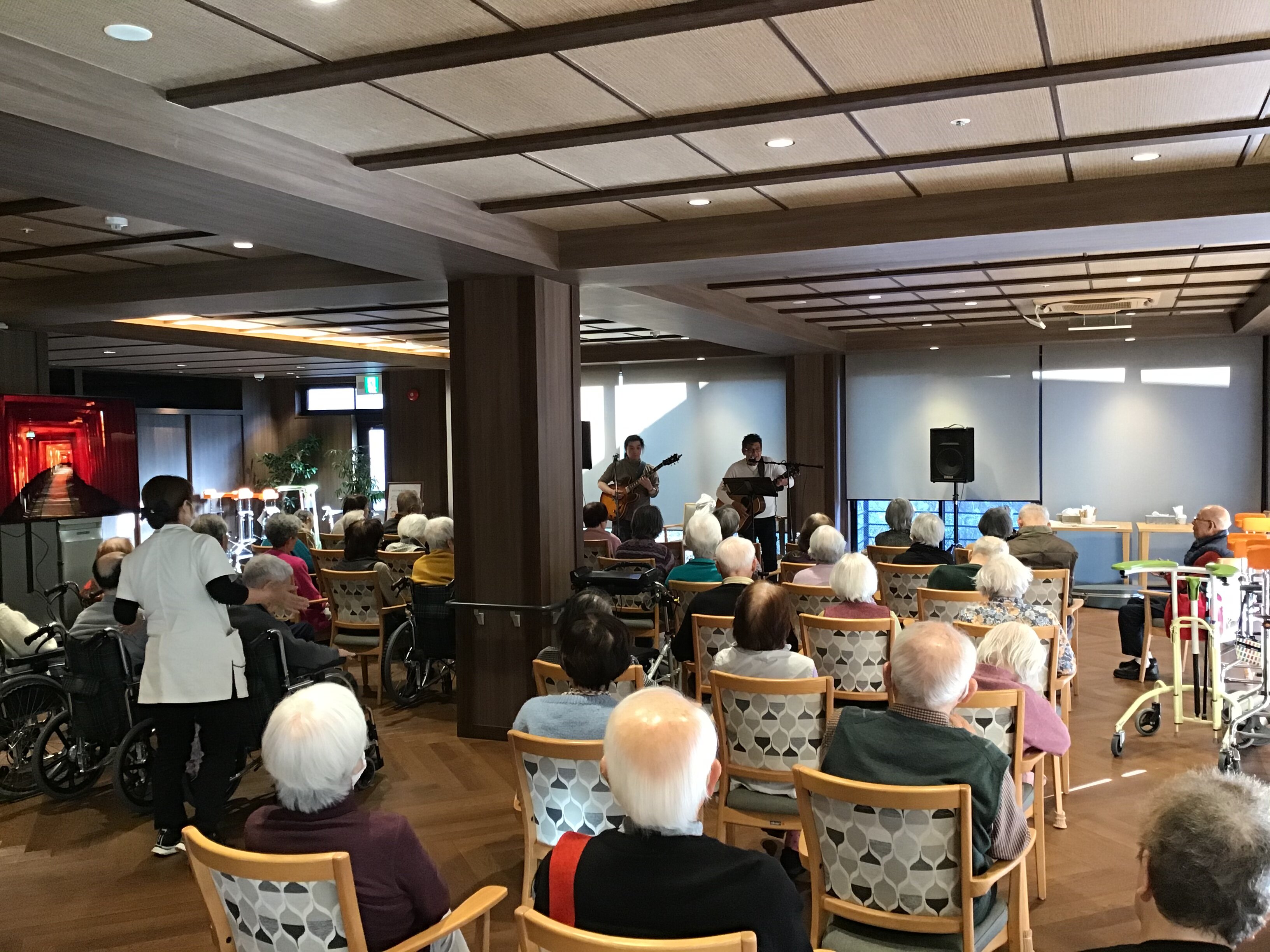 生演奏ならではの迫力と、お二人のプロフェッショナルな演奏が織りなす感動が施設内に広がり、笑顔あふれる素敵なひとときとなりました。