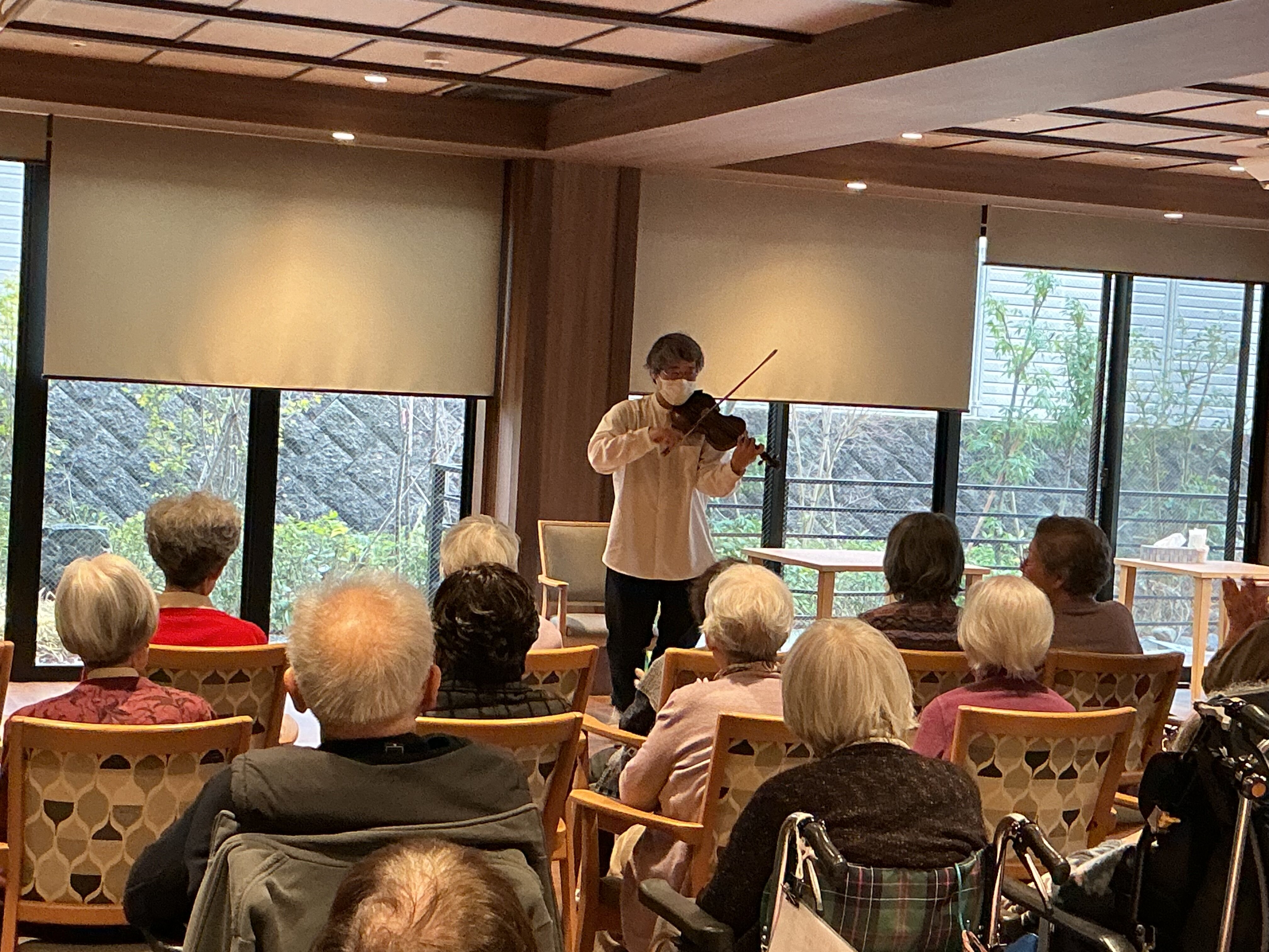 冷え込みが一段と厳しくなってまいりましたが、皆さまいかがお過ごしでしょうか。 本日は、先日当施設にて開催いたしました特別なイベント**「Xmas Fiddle solo Concert」**の様子をお届けいたします。