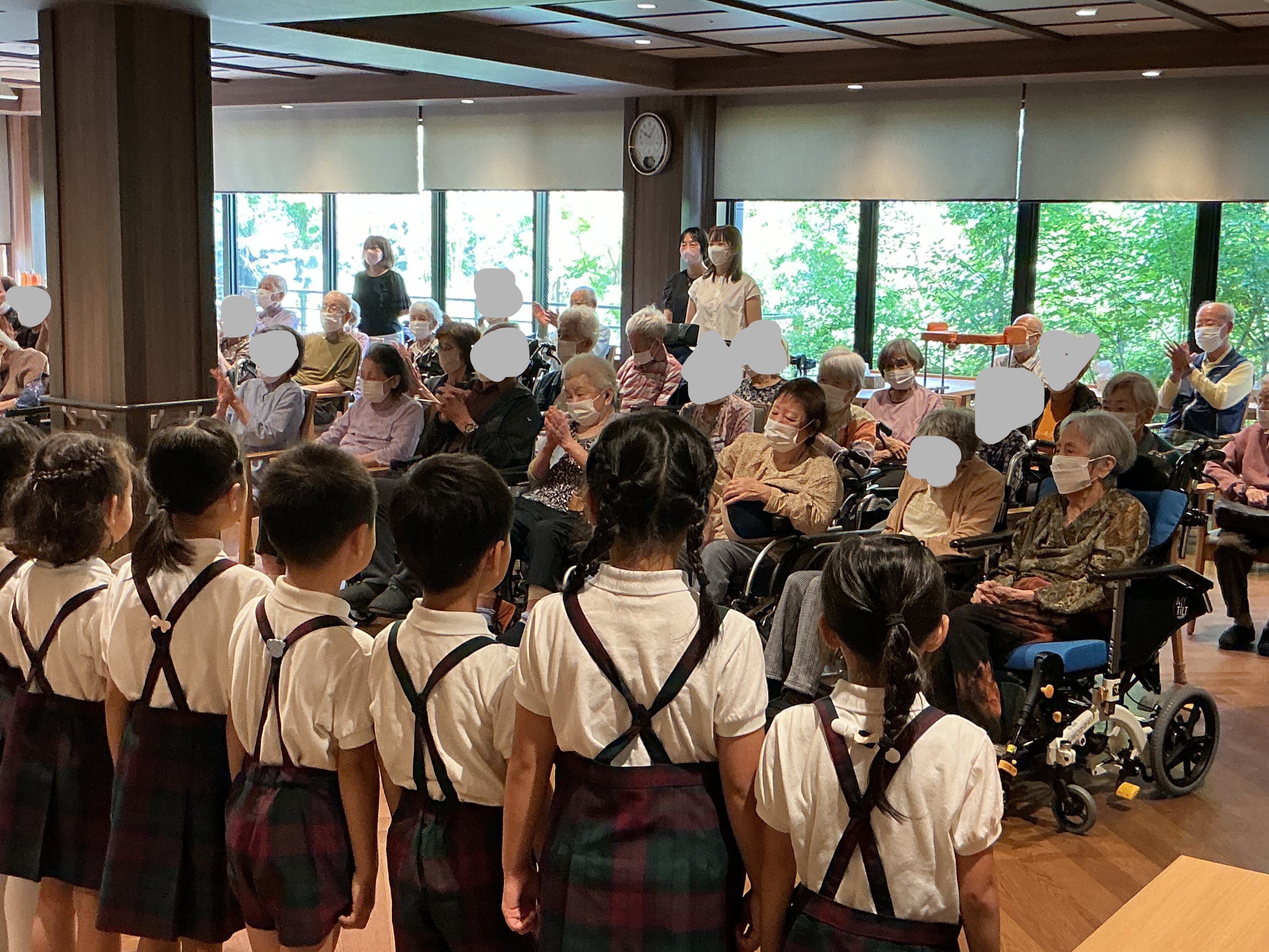 園児さんの元気と笑顔に、ご入居者の皆様も自然と笑顔がこぼれ、心温まるひとときとなりました。