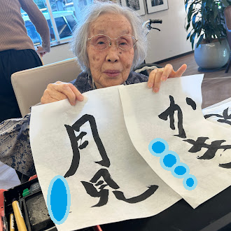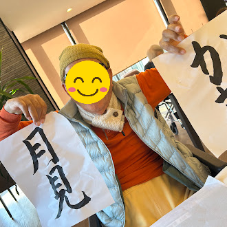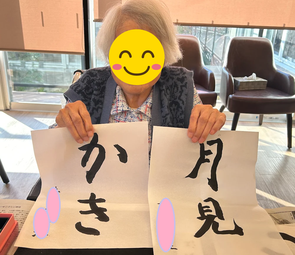 11月の書道は「かき」「月見」を書いていただきました_( *´꒳`* _ )_