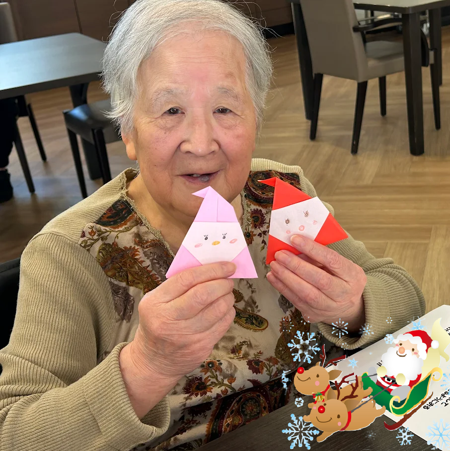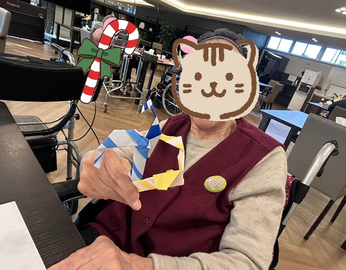 今回は来月のクリスマスに向けて、クリスマスの飾りを皆さまに折って頂きました꒰ *´ω`* ꒱