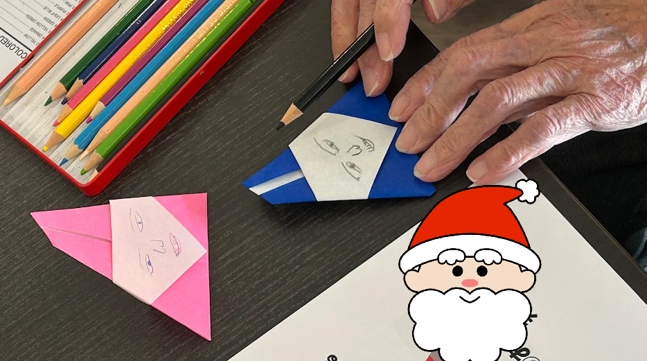 折ったサンタクロースに顔を書いて完成しました\(^_^)/
