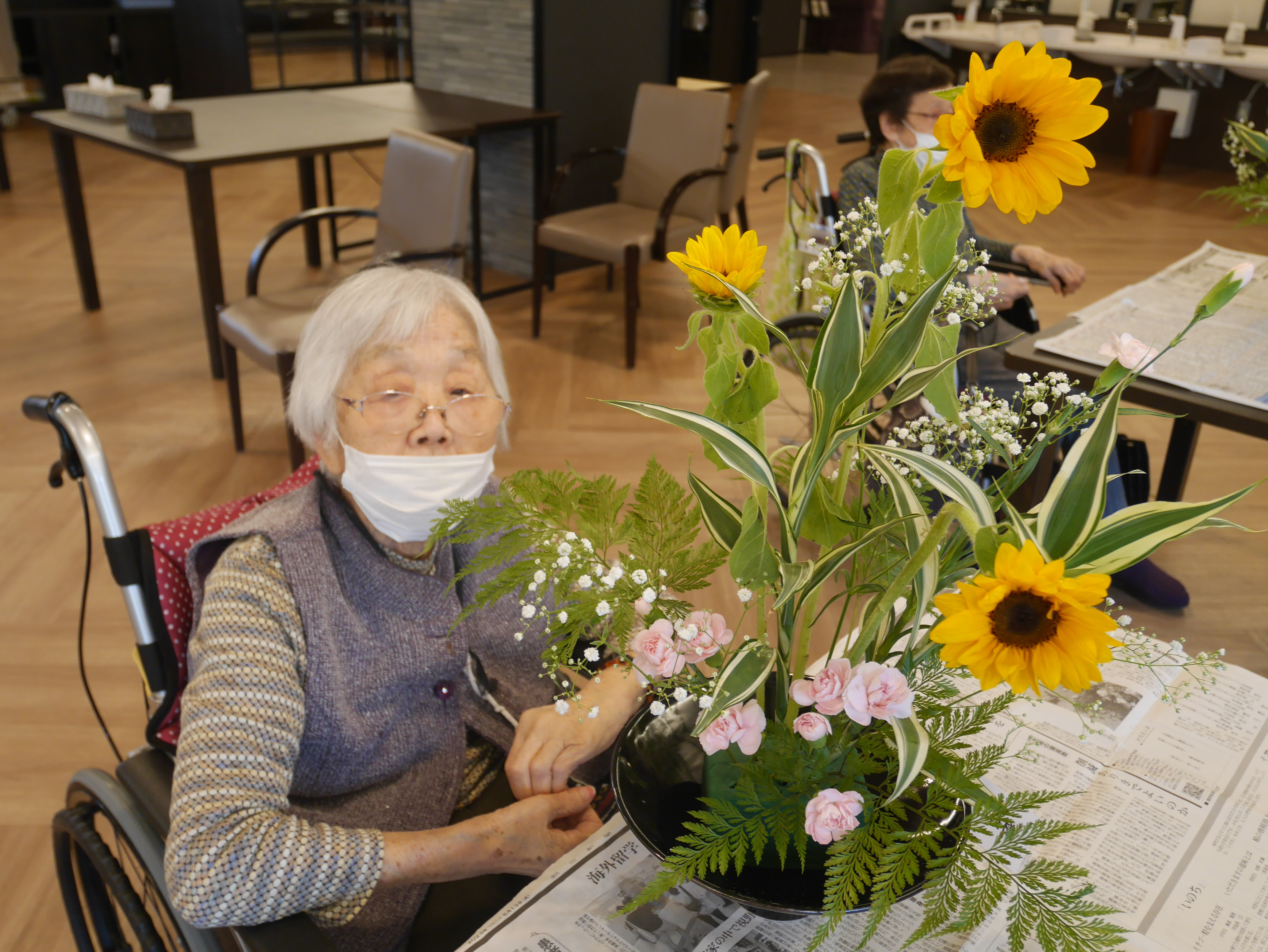 参加されたご入居者様は「この花はどこがいいやろう?」