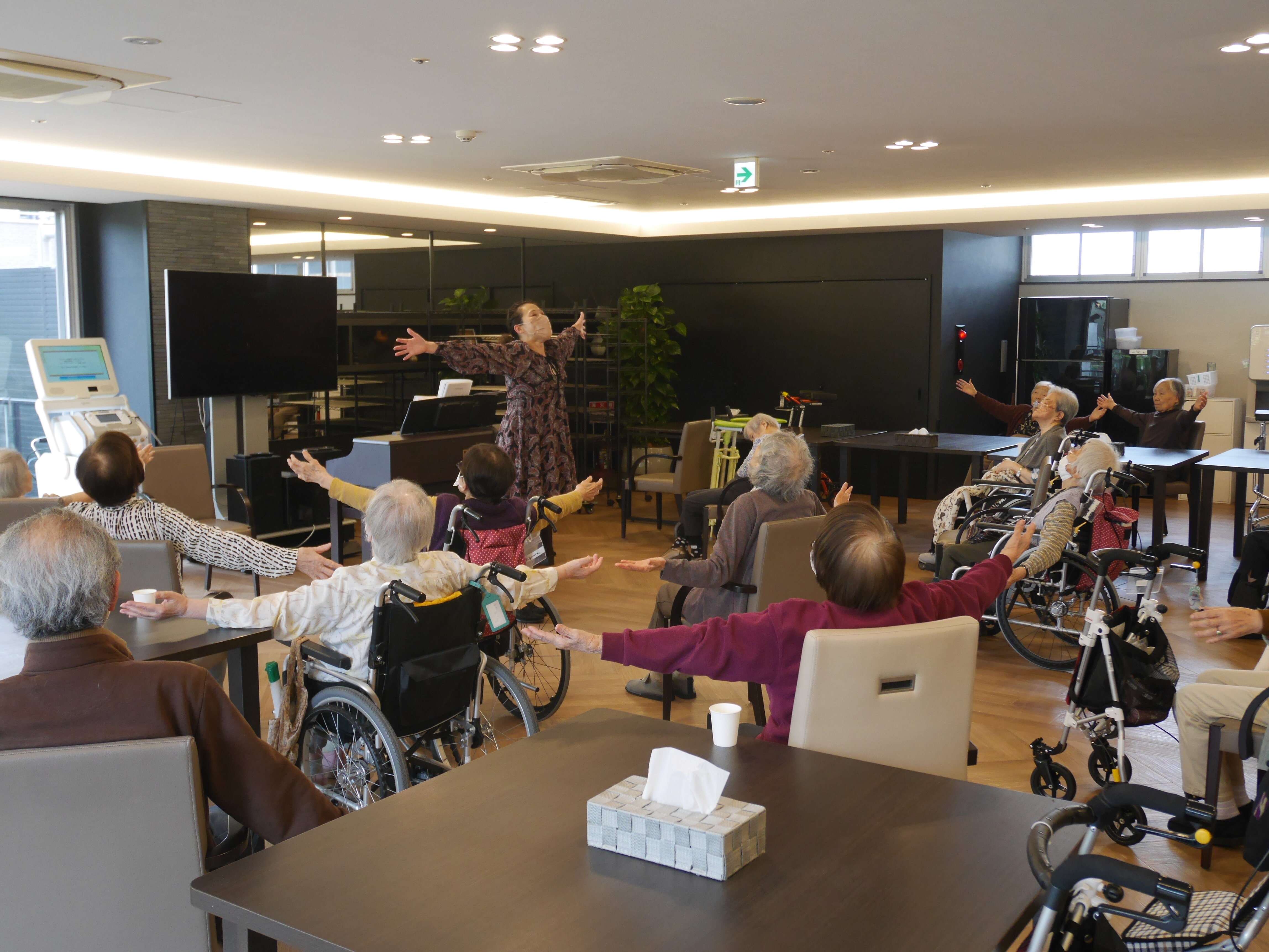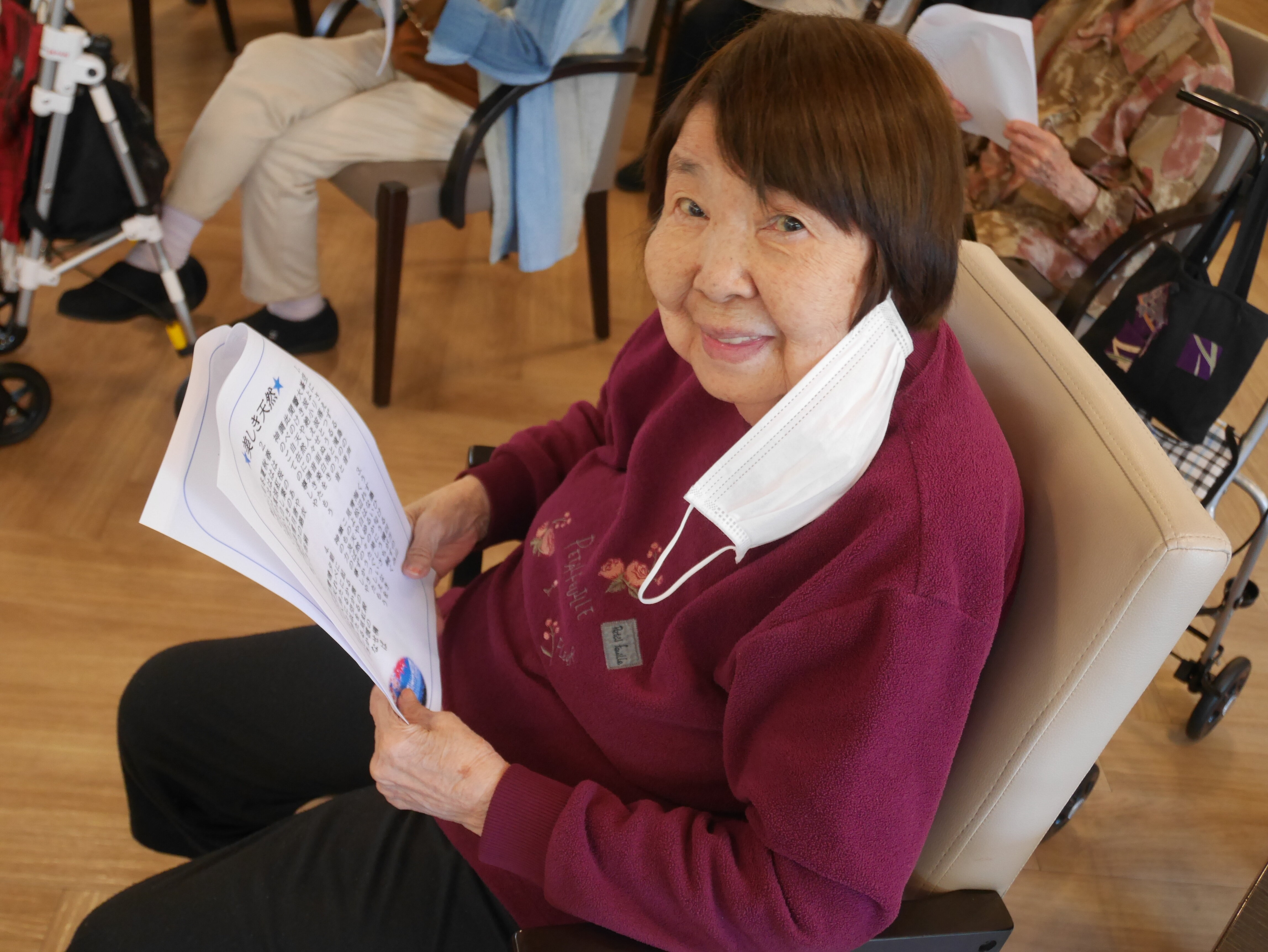 先生帰られた後、入居者様集まられて「美香先生の声は本当に綺麗やな~」「毎回楽しみにしてる」とたくさん仰っておられました(*^^)v