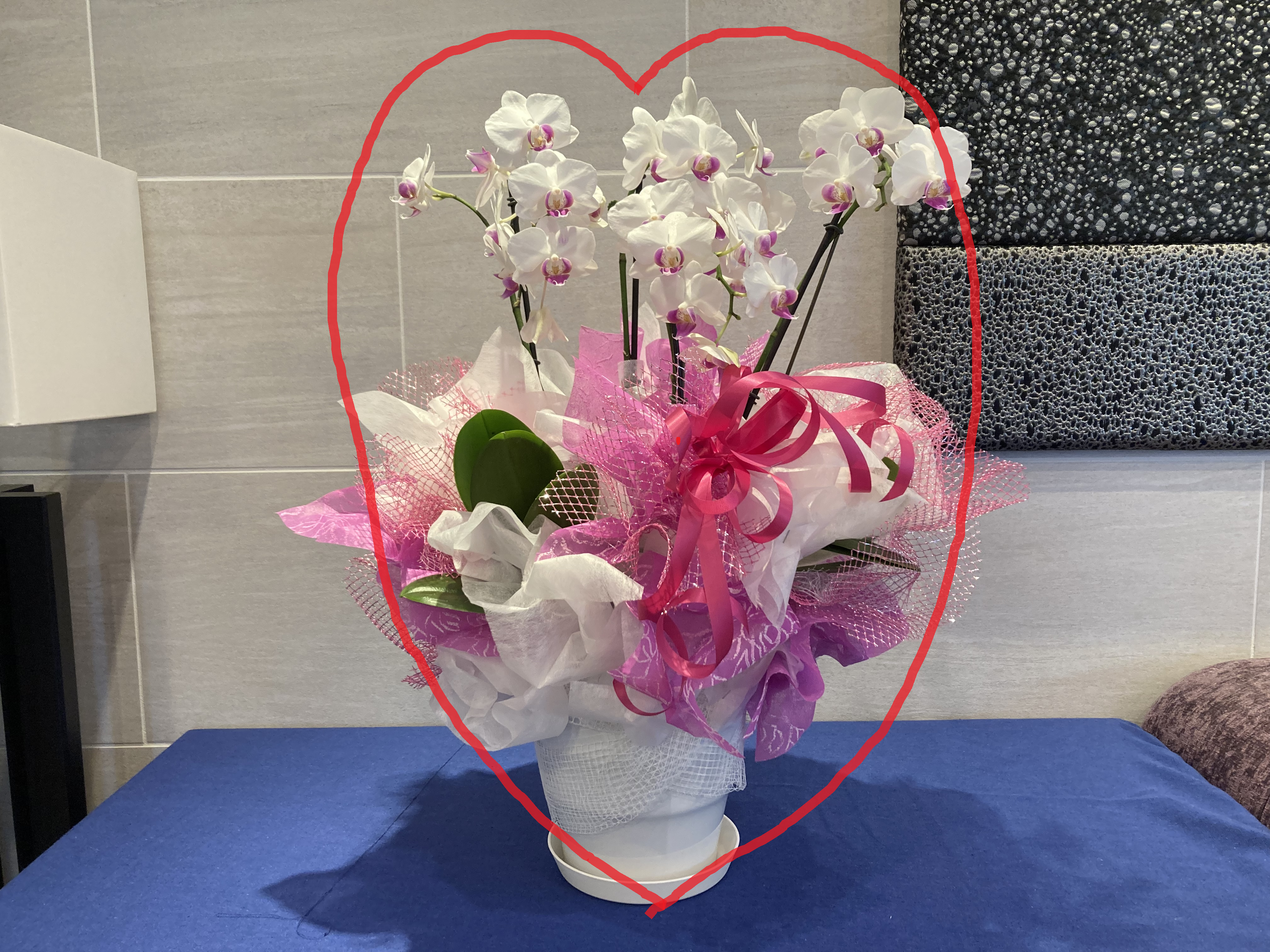 ラン花の鉢植え、ハートに見えます♡